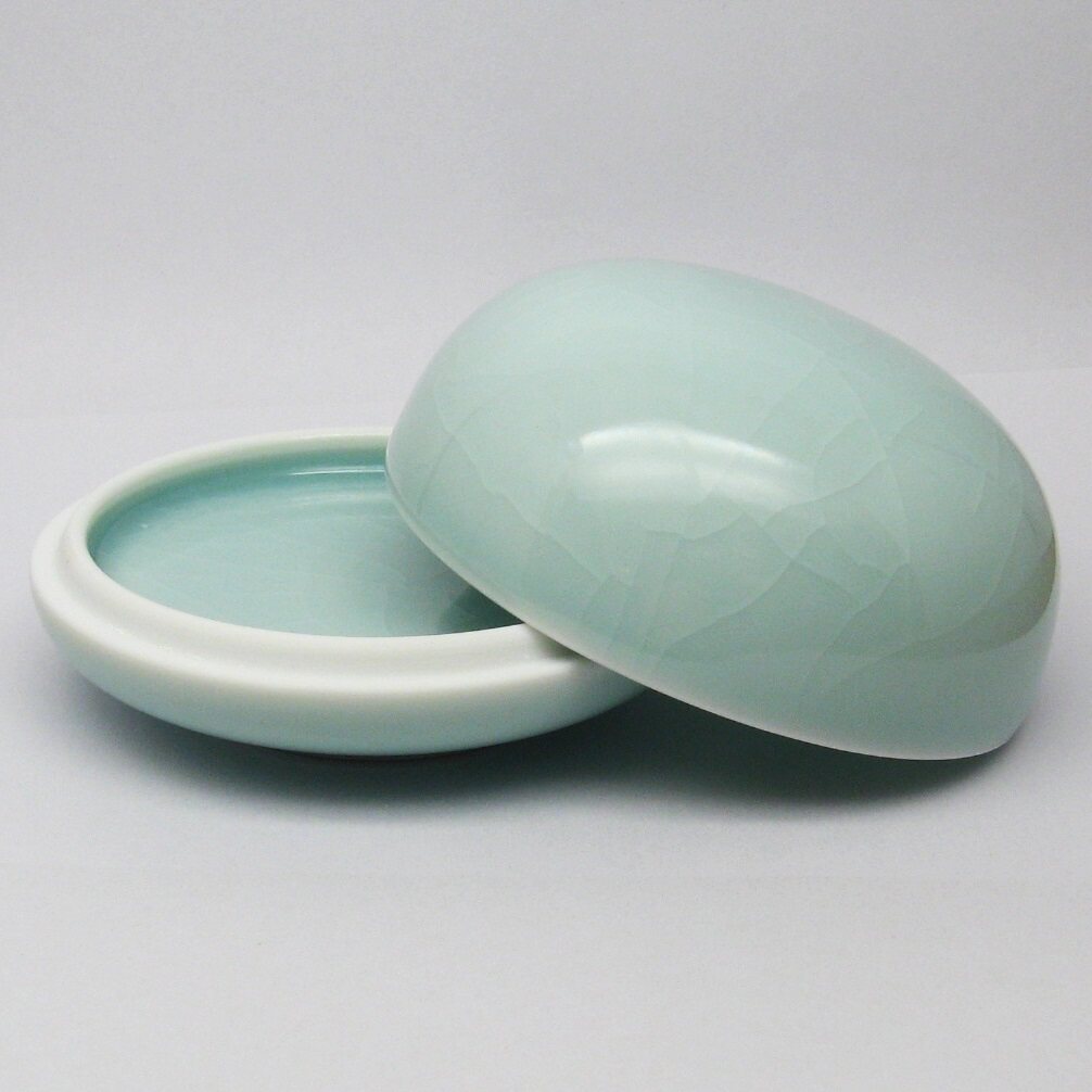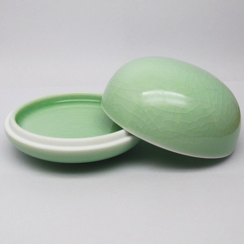 2. Чана из розового селадона с высокой крышкой и потрескавшимся льдом Лунцюань или чан из селадона с фасолью,Внешний диаметр 8,5 см, внутренний диаметр 7,8 см, высота 5,5 см. Случайная доставка