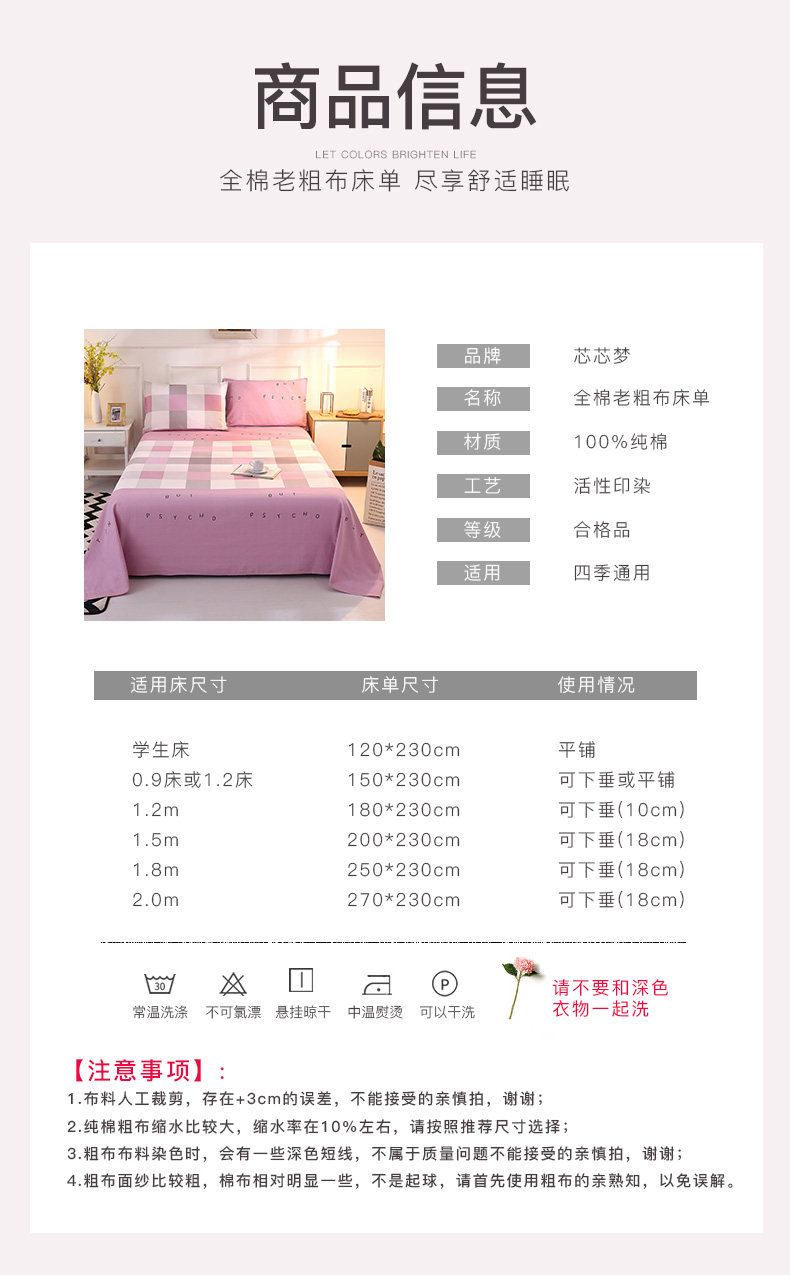 芯芯梦 Хлопковая простыня, ткань, увеличенная толщина, из хлопка и льна, 2м