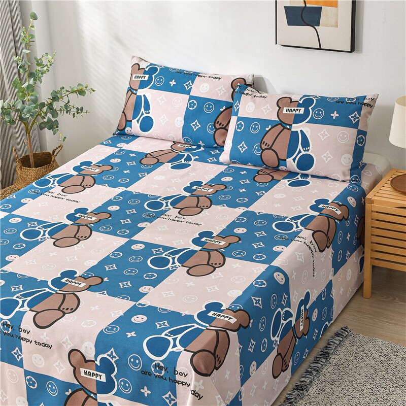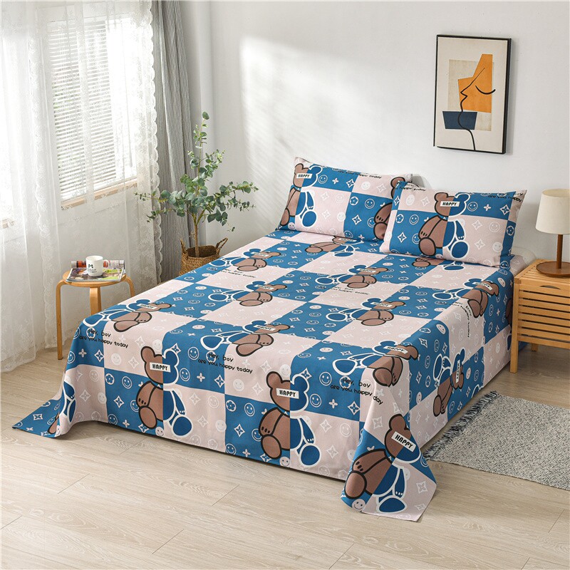 Хлопковая мультяшная простыня, летний комплект, хлопковый коврик, увеличенная толщина, из хлопка и льна, 3 предмета
