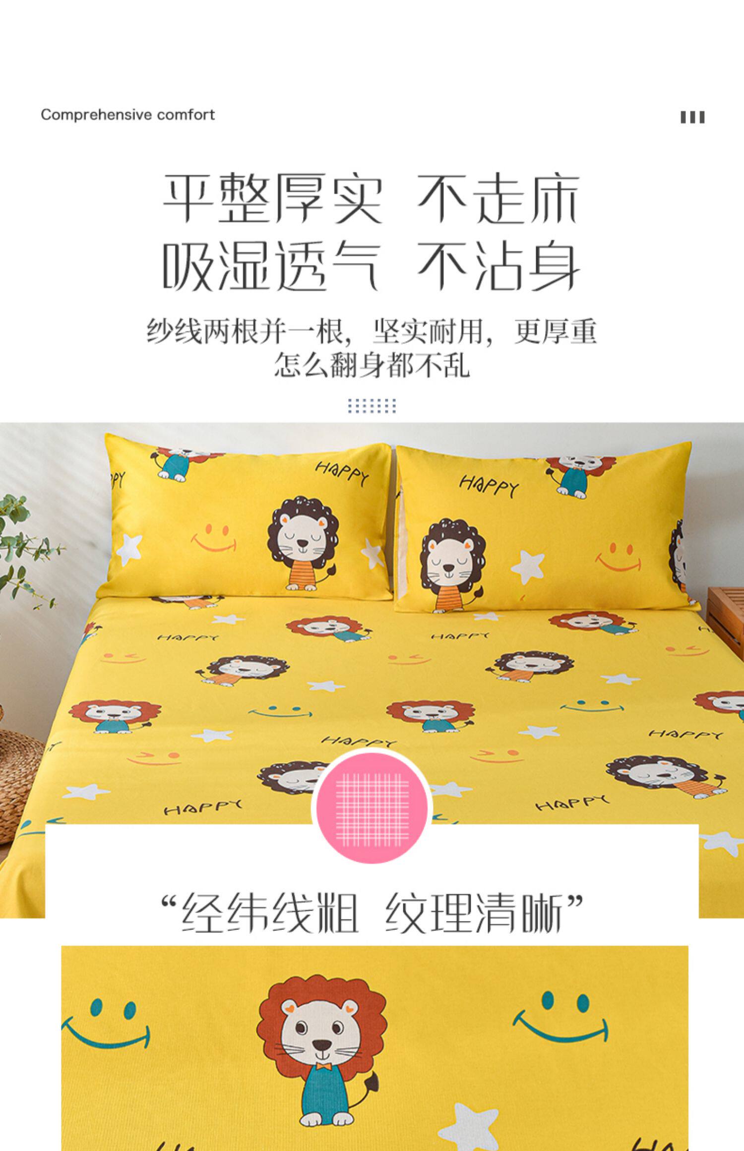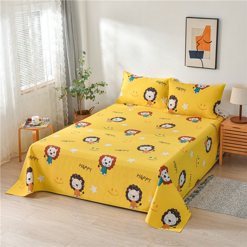 Хлопковая мультяшная простыня, летний комплект, хлопковый коврик, увеличенная толщина, из хлопка и льна, 3 предмета