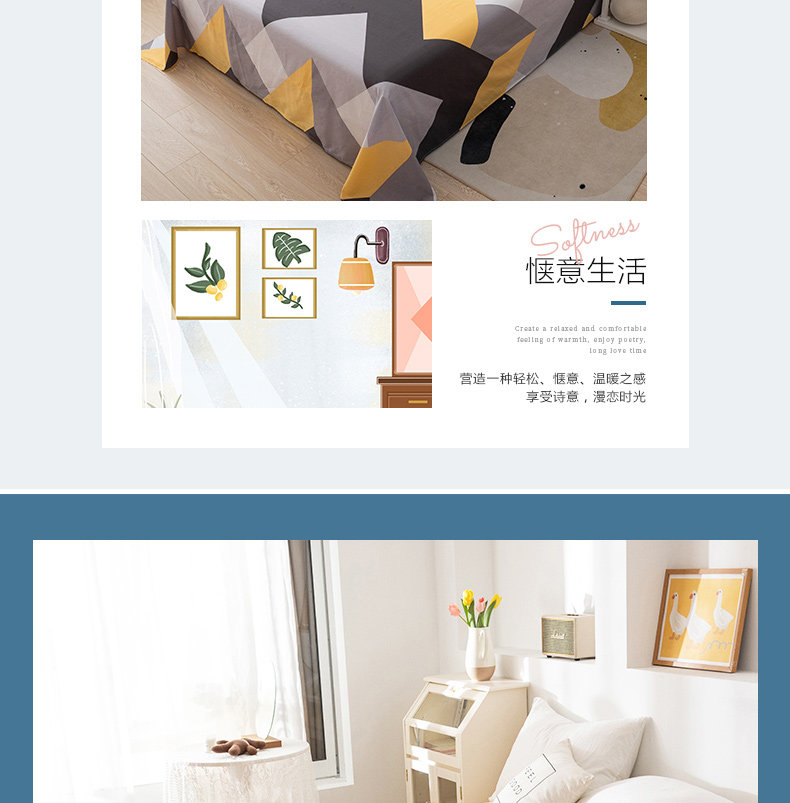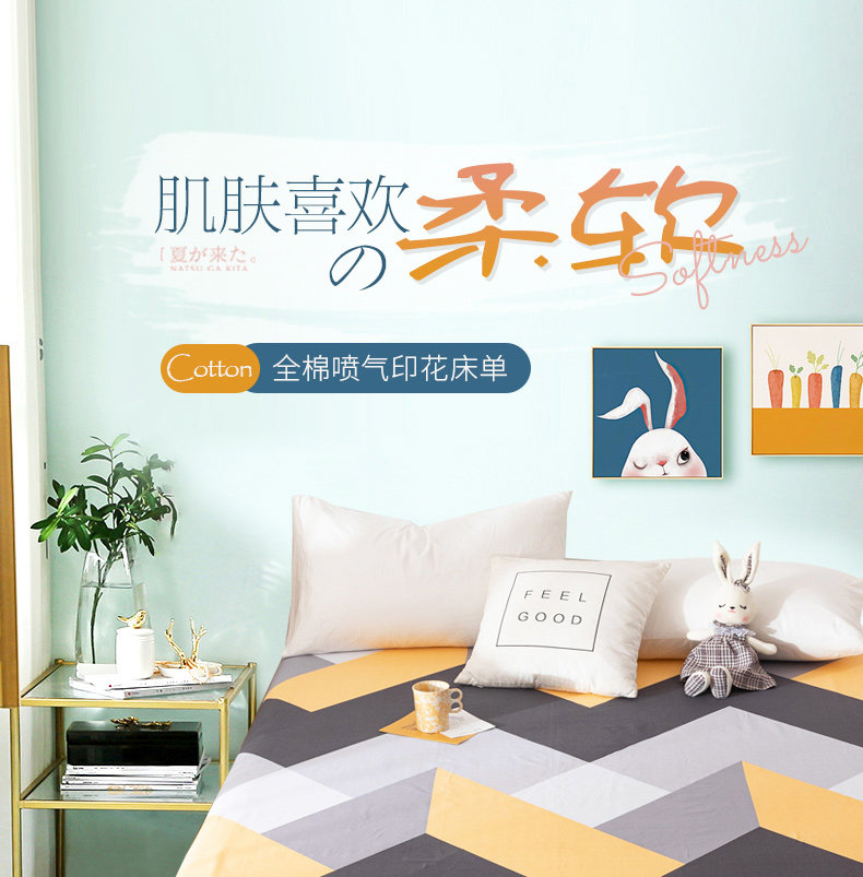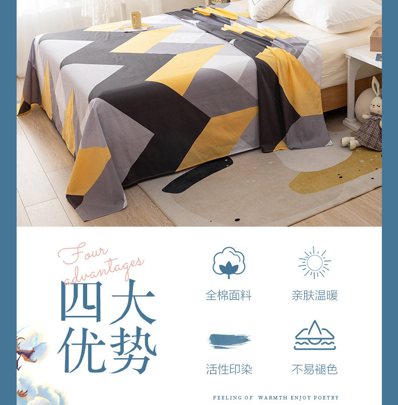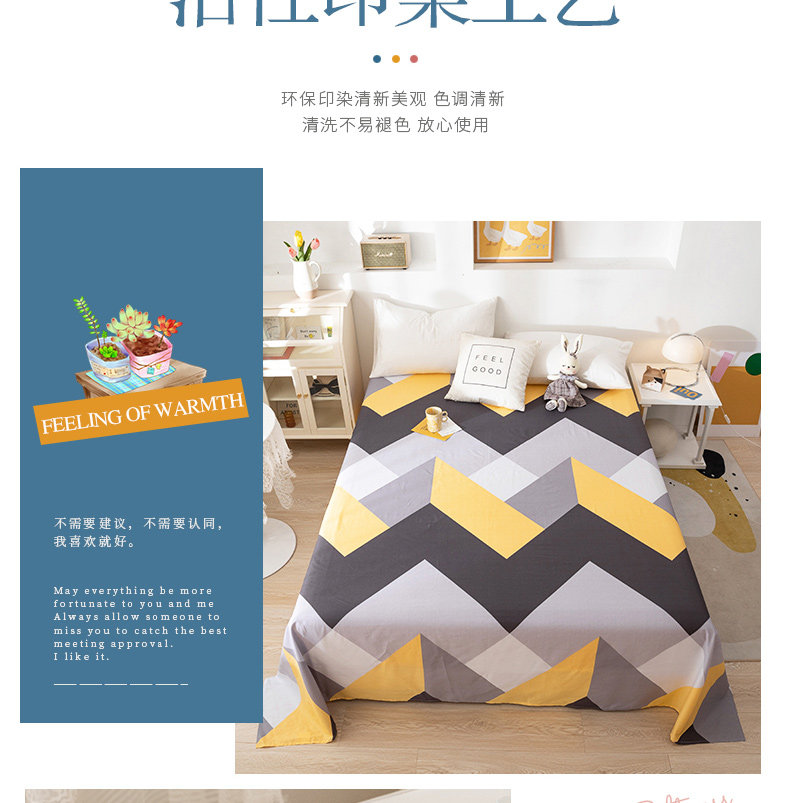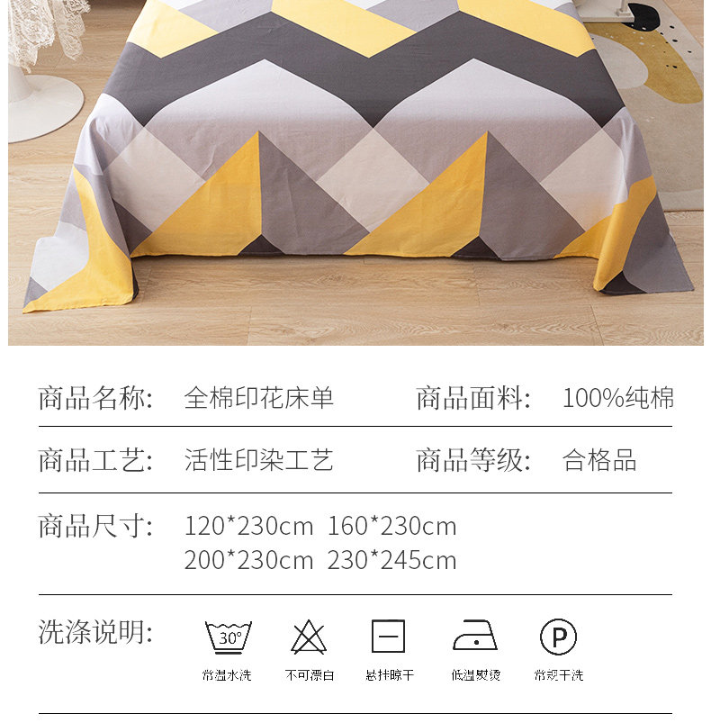 Хлопковая простыня, хлопковый комплект, 1.5м, простой и элегантный дизайн, 3 предмета, 1.2м
