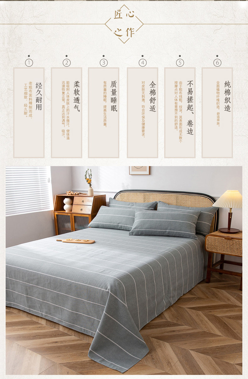 Хлопковая простыня, хлопковый коврик, комплект, увеличенная толщина, из хлопка и льна, 3 предмета