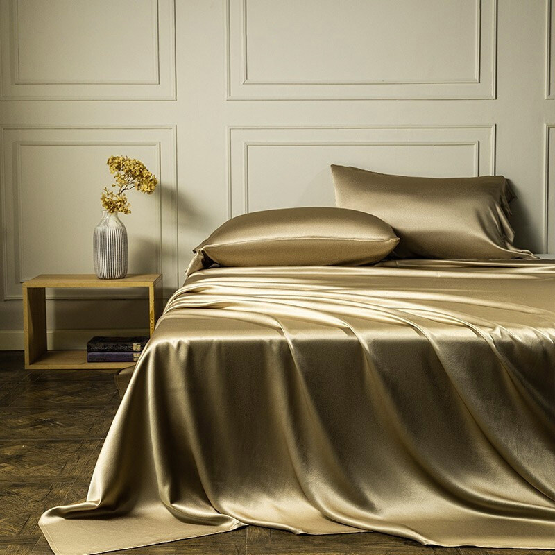 Летняя простыня, шелковое покрывало, наволочка, комплект, цвета шампанского, 3 предмета
