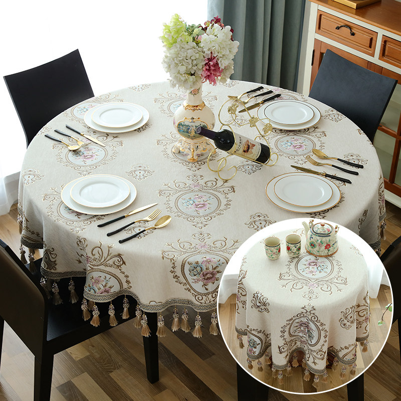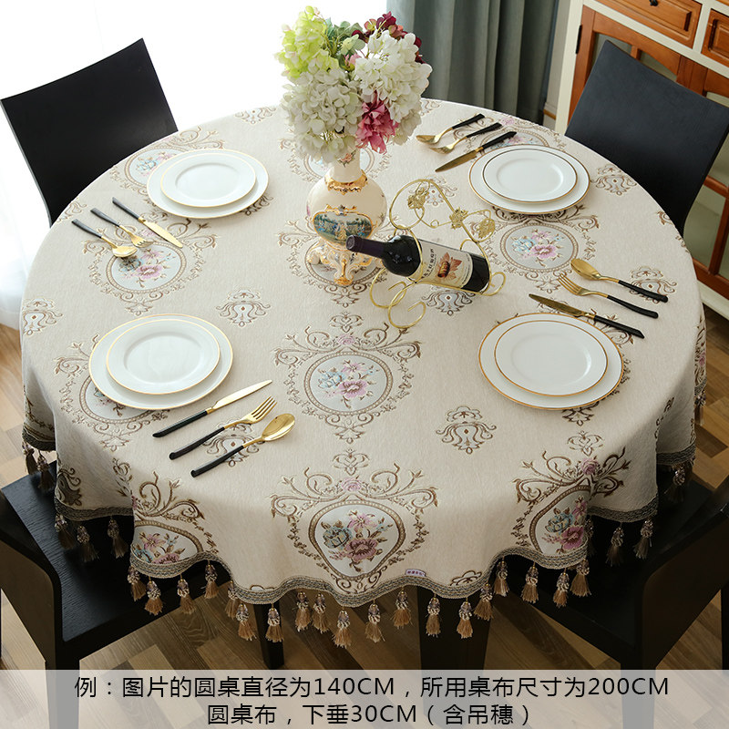 Европейский стиль 1,5 -метровый круглый стол для стола стола круглый голубой гостиная гостиная кофейная столик ткань ткань ткань арт вокруг нескольких скатерти