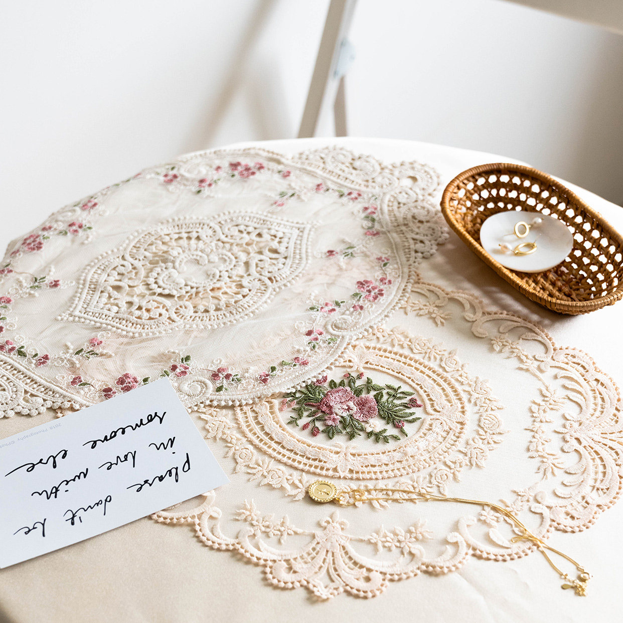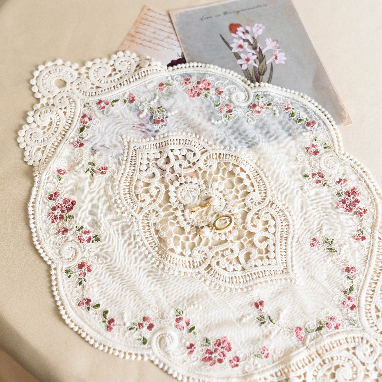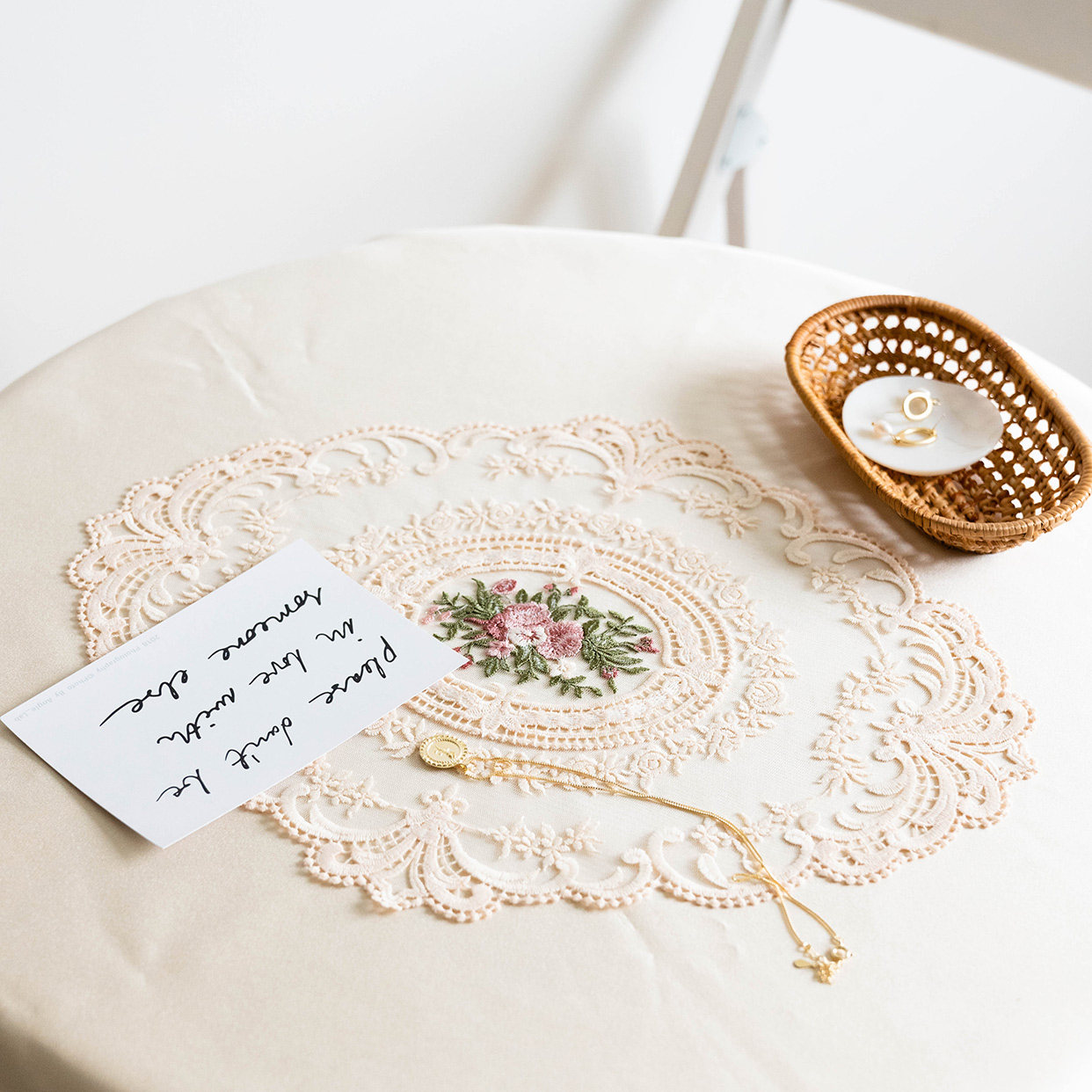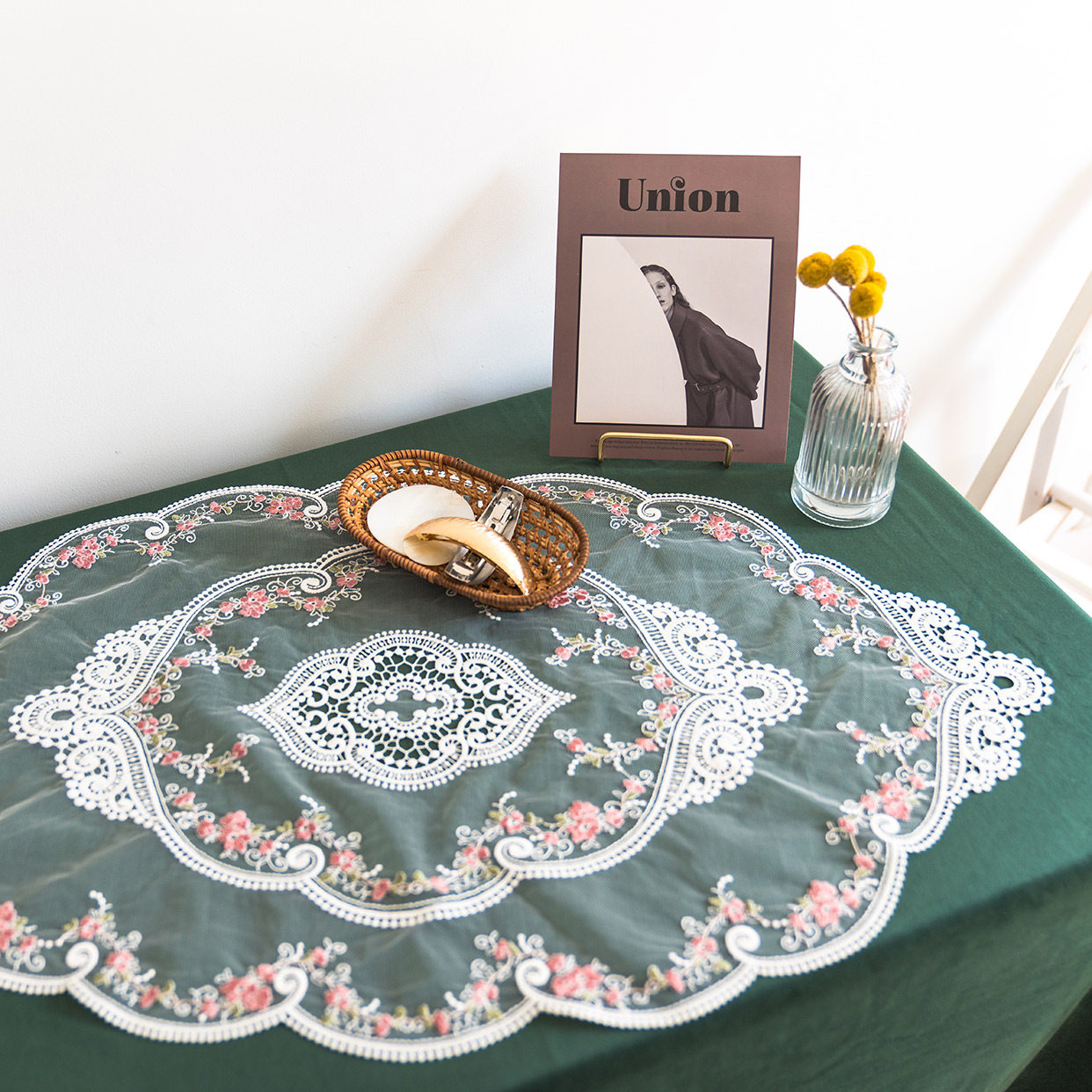 Ретро французское кружевное столовое подушка Ins Wind Girl Girl Вышитая цветочная циркулярная стола.