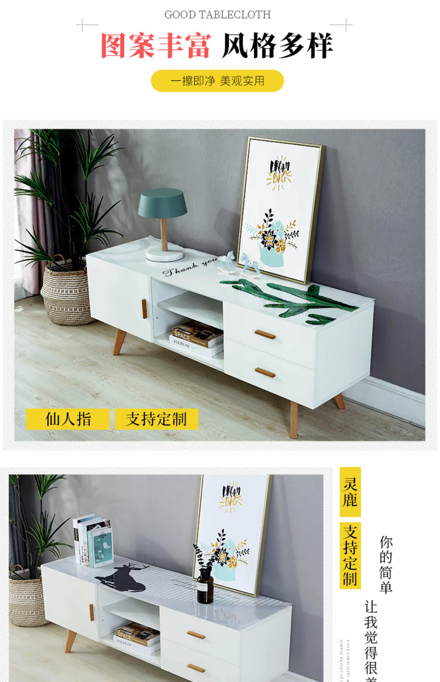 ТВ -шкаф с хрустальной доской, водонепроницаемые, нефтяные и анти -хот -пластиковые пластиковые ПВХ мягкий стеклянный настройка кофейня