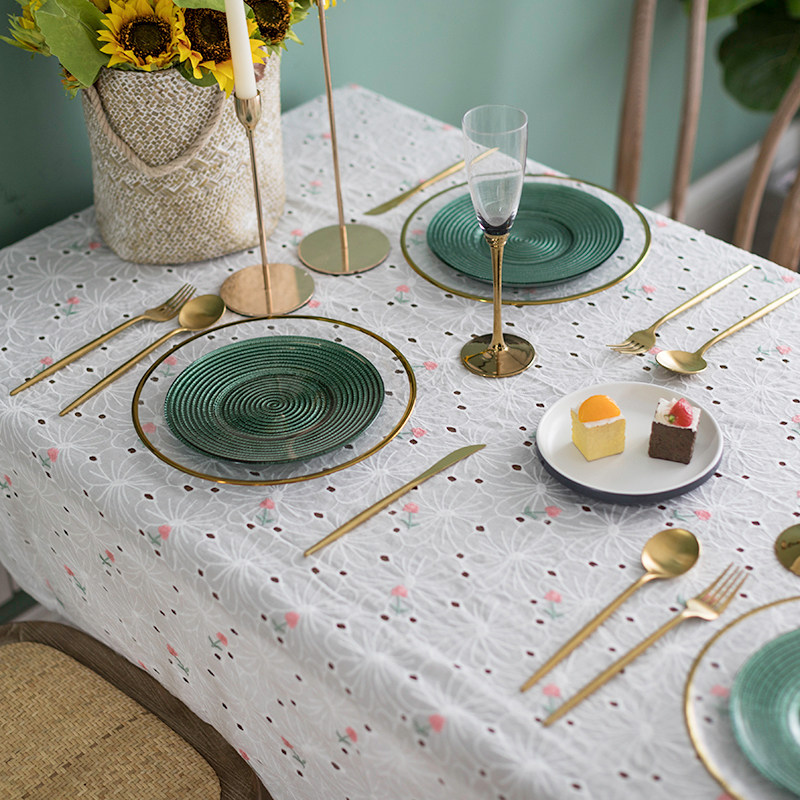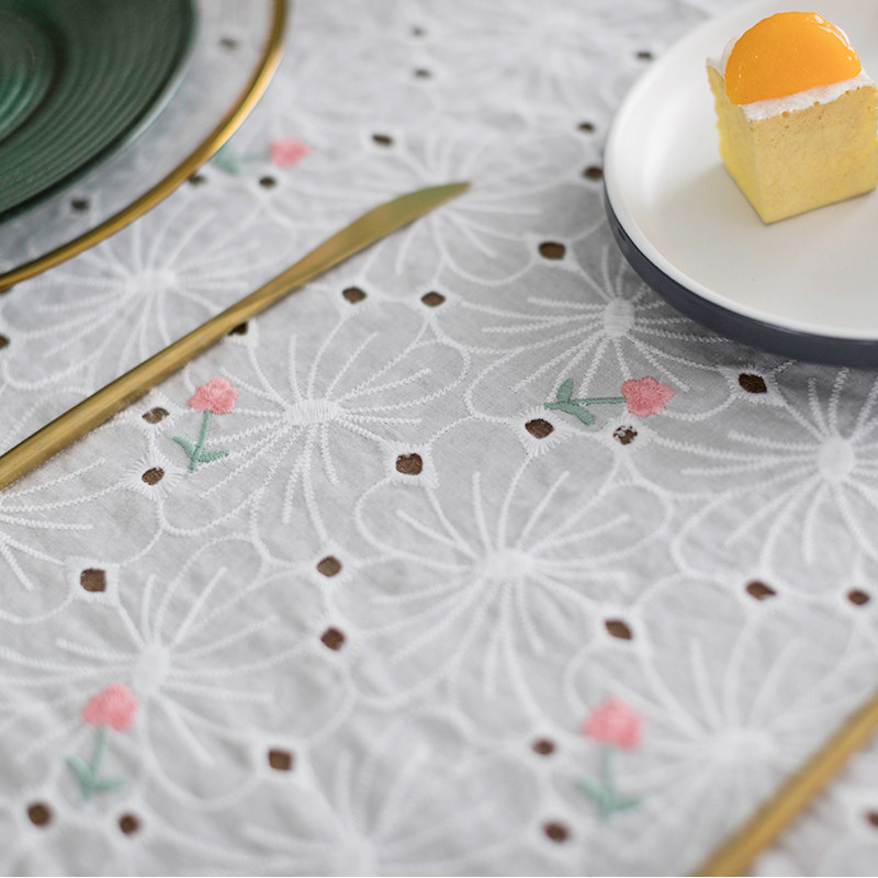 Прямоугольная французская ретро -литературное кружевное столовое столовая ткань северная ткань круглый стол белый полой вышитый цветочный журнальный столик покрыт ткань