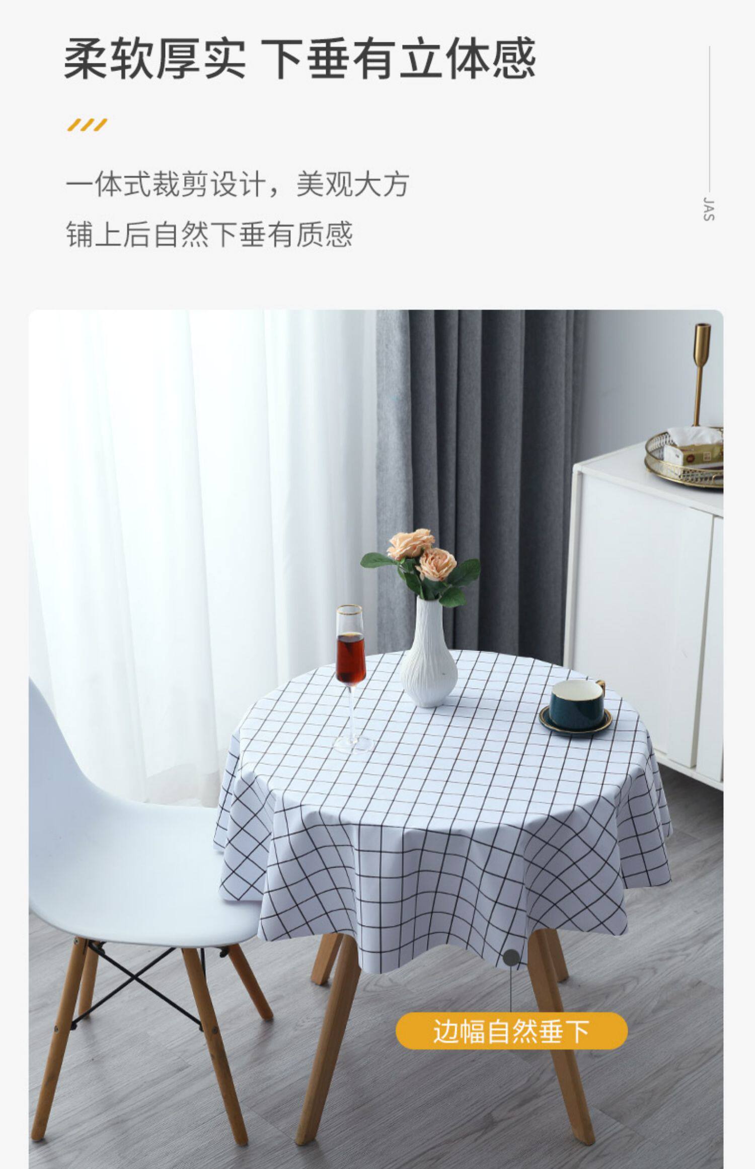 Круглая скатерть водонепроницаемость масла -безпрофильная домашняя кубическая столовая ткань скандинавская ткань кофейного стола с ветряным столиком