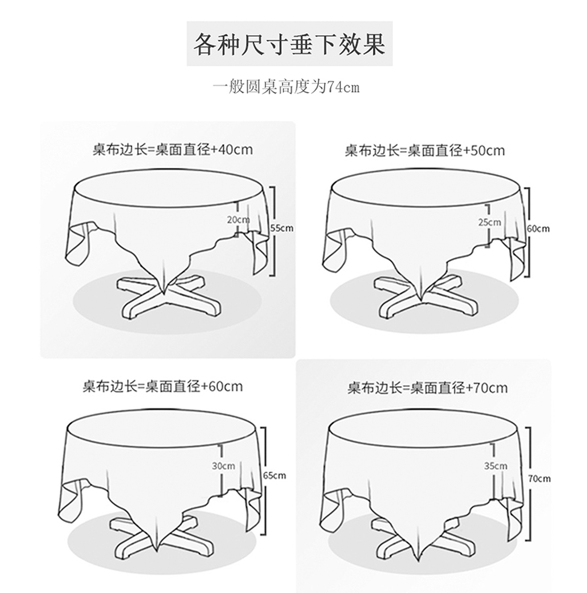 | Характеристики: | 110*110 подходит для небольших кругов/квадратных таблиц в пределах 0,7 метра, 135*135 подходит для небольшого круглого/квадратного стола в пределах 1 метра, 135*175 Подходит для таблицы 1,2-1,3 метра, 135*195 подходит для таблицы 1,3-1,5 метра, 135*215 подходит для таблицы 1,5-1,7 метра, 135*235 Подходит для таблицы 1,7-1,9 метра, 135*255 Подходит для таблицы 1,9-2,1 метра, 135*275 Подходит для таблицы длиной 2,1-2,3 метра |