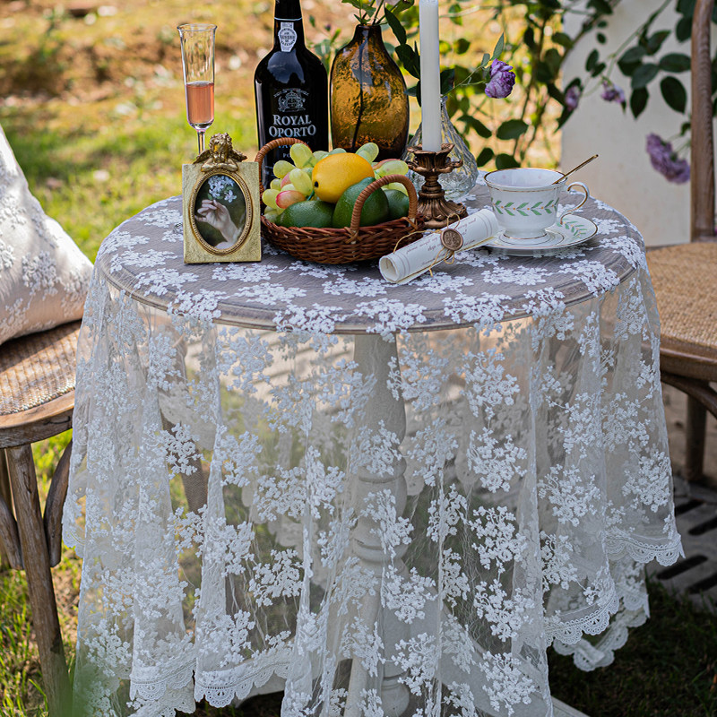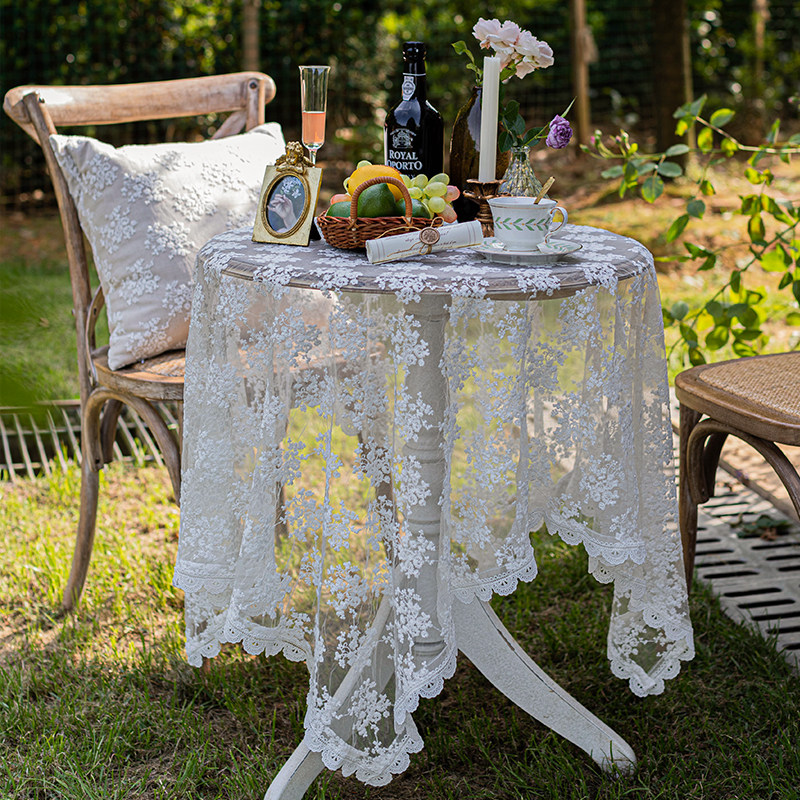 Кружевная белая скатерть в стиле ins, журнальный столик, скатерть, французский ретро, круглый стол, десерт, прямоугольная скатерть, чехол