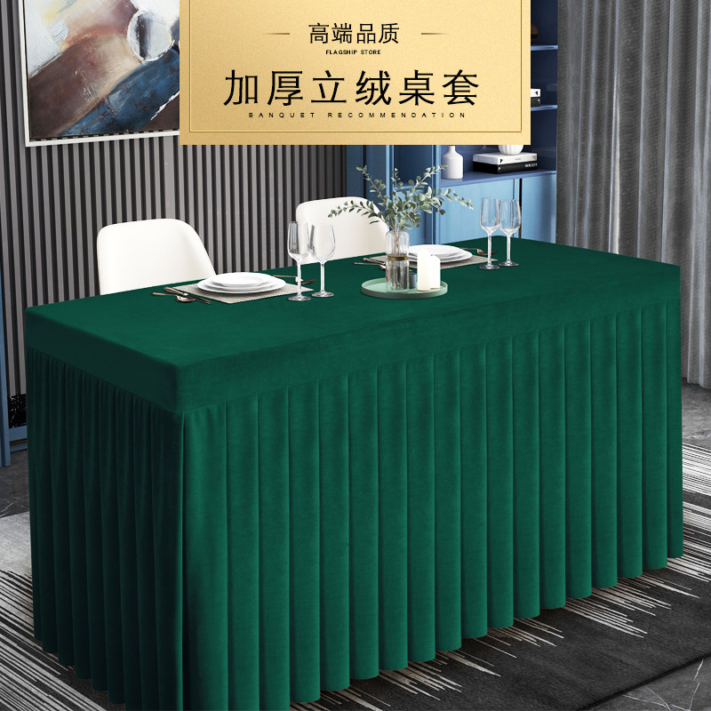 Индивидуальная конференция табличка с твердым цветом сгущенным бархатным столом набор на стол, покрывающая длинную квадратную форму -в тайваньском коммерческом выставочном столе юбки