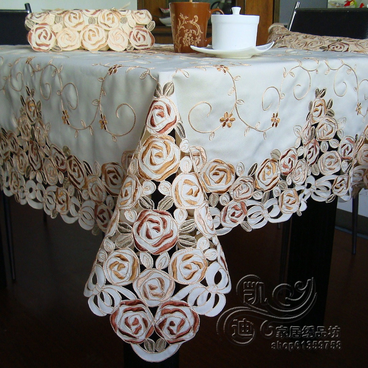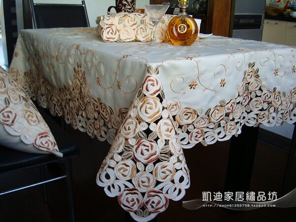 Спецификация 1: 135*180cm прямоугольник Спецификация 2: 150*230CM прямоугольник цвет : Кофе розовая вышивка Работники для вышивки большие, полны роскоши и благородного Материалы : Высококачественная лапша и добродетель Цель : Используется для обеденного стола и журнального стола Диван в ожидании полотенец Цена на колонны кофе розы