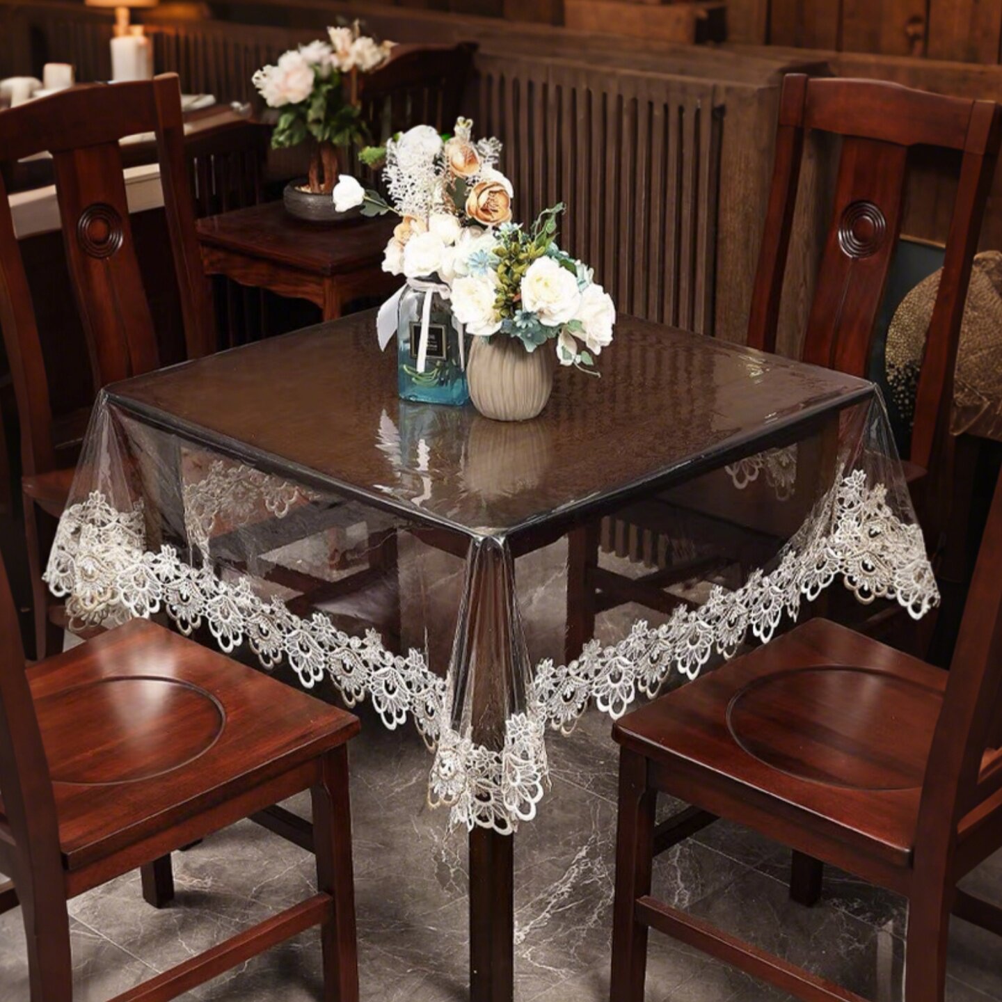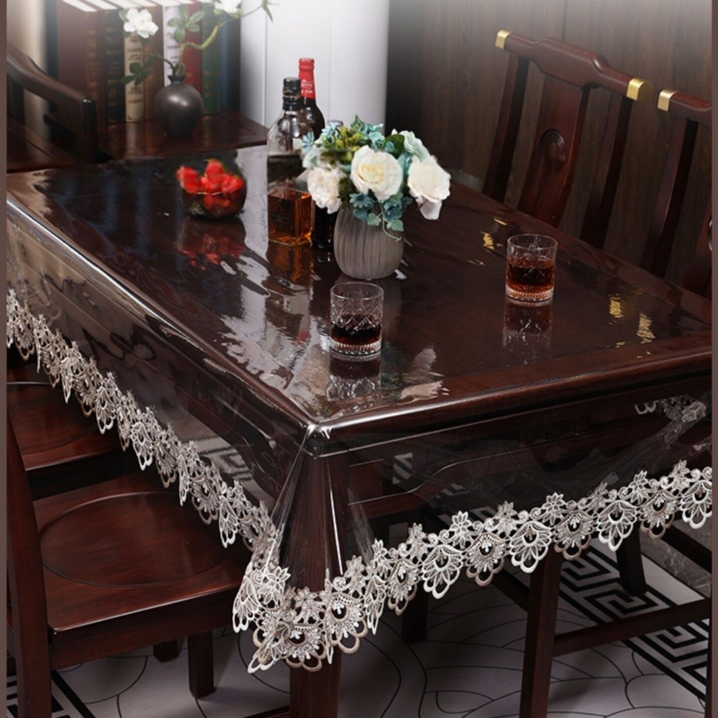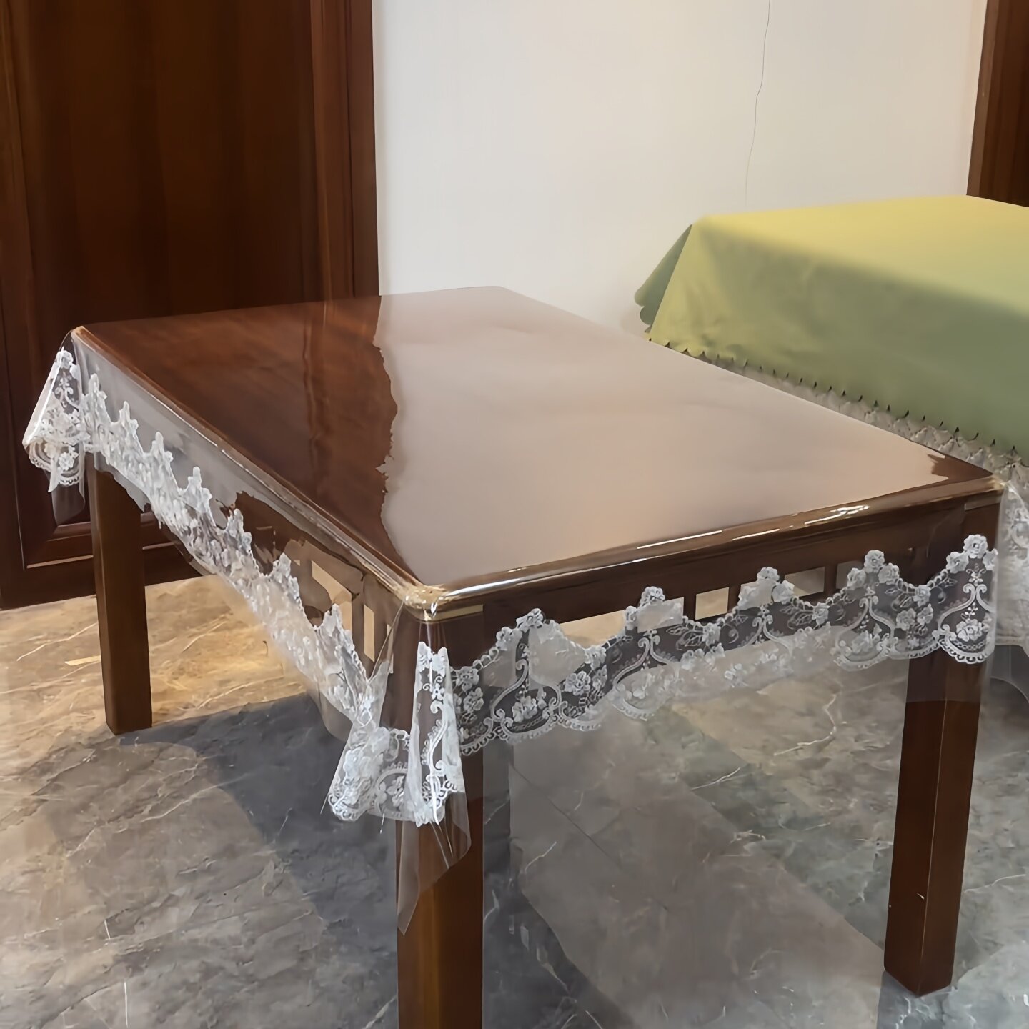 Водонепроницаемый стеклянный настольный коврик из ПВХ, защита от ожогов, кружевное платье