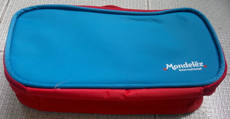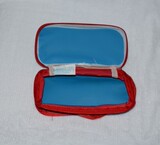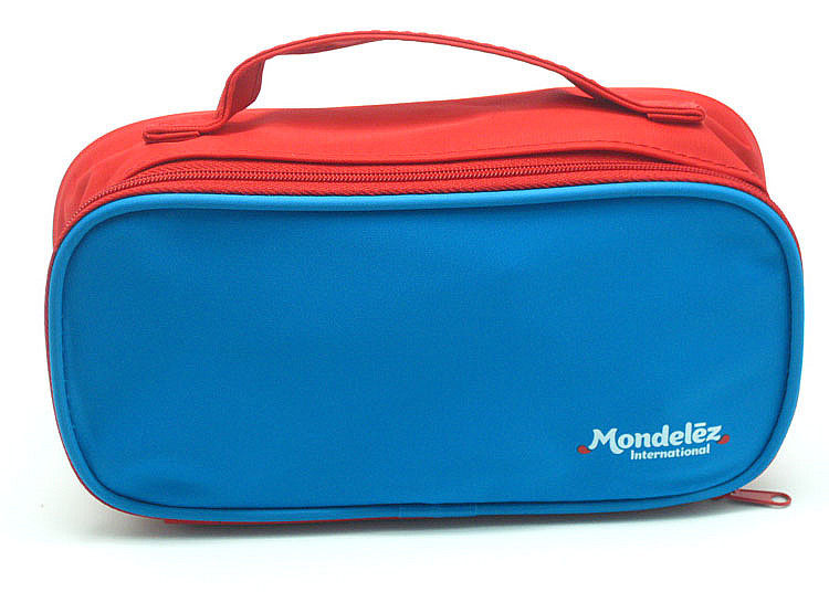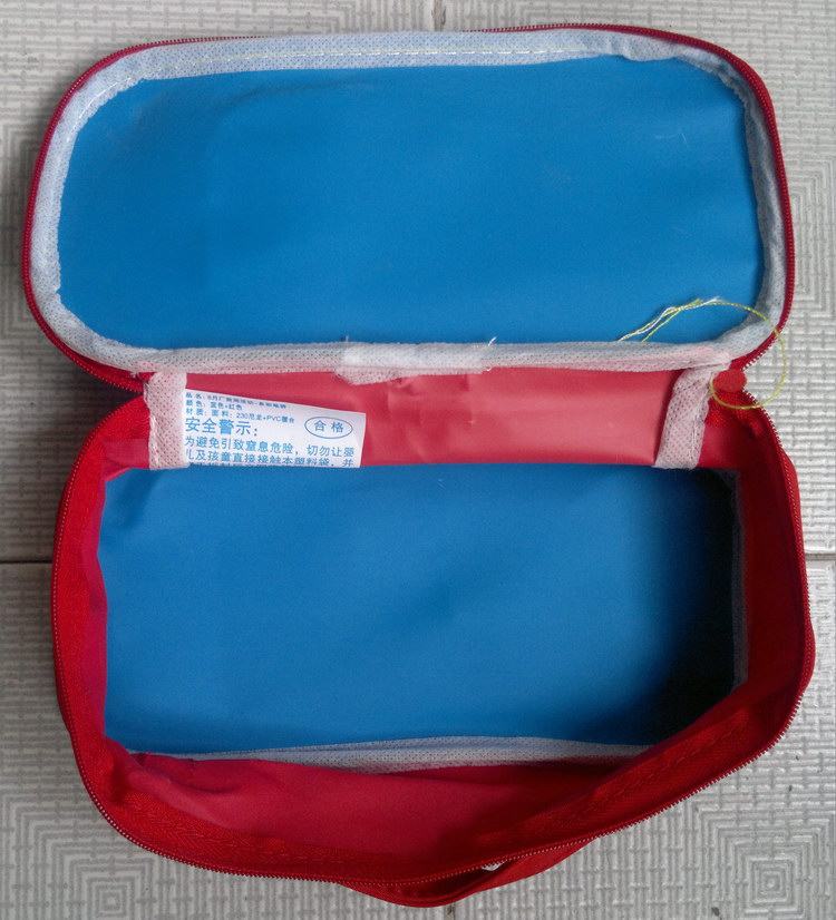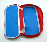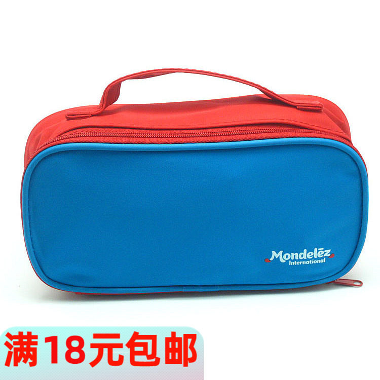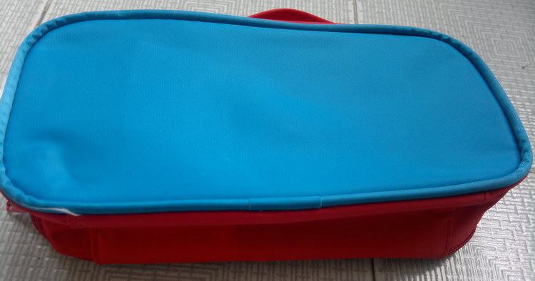 Синие цветные карандаши, пенал, косметичка, красочные мелки