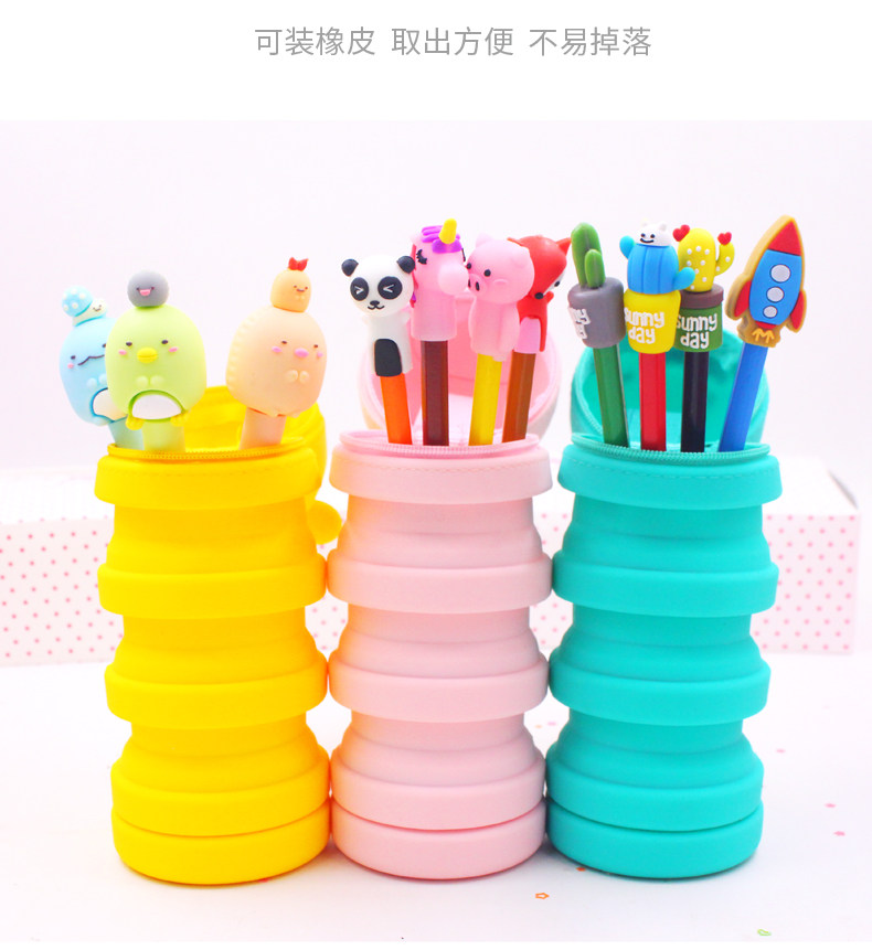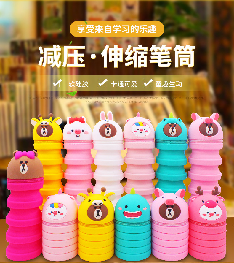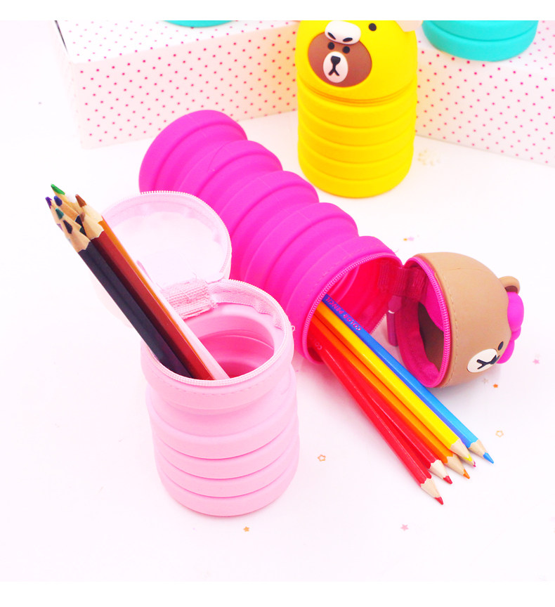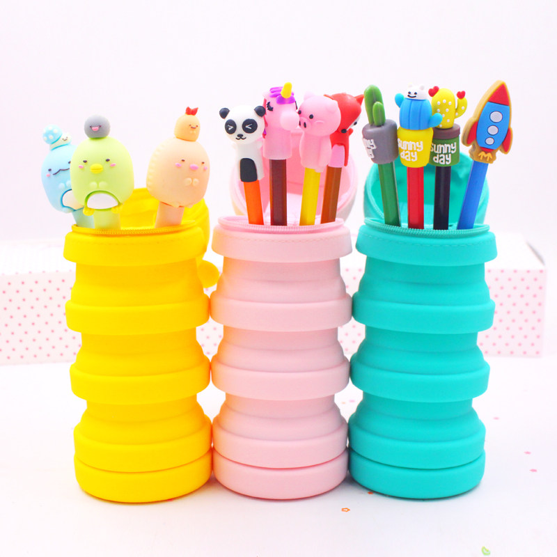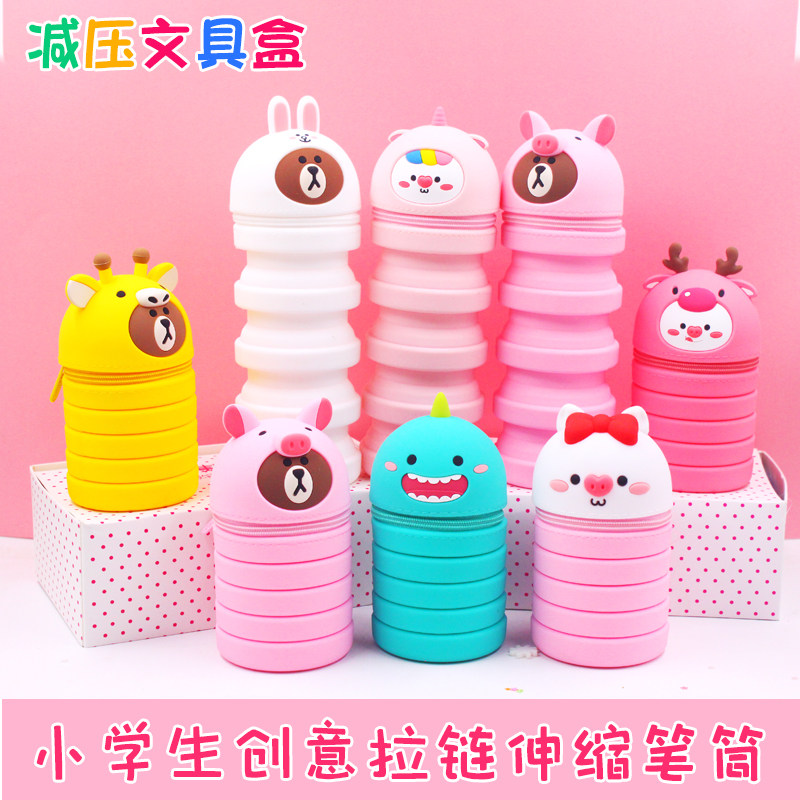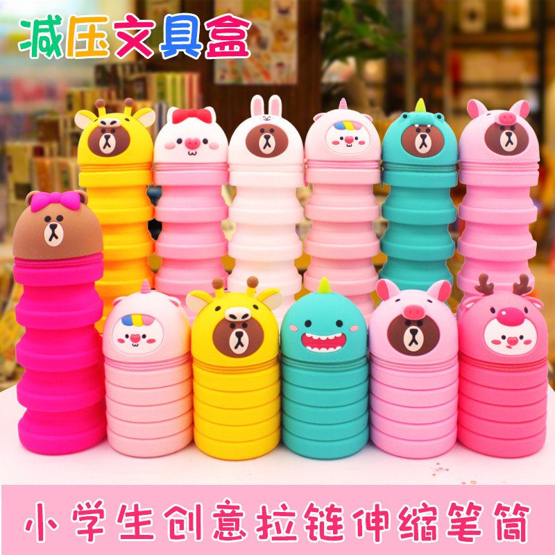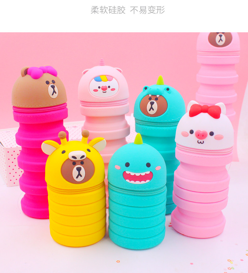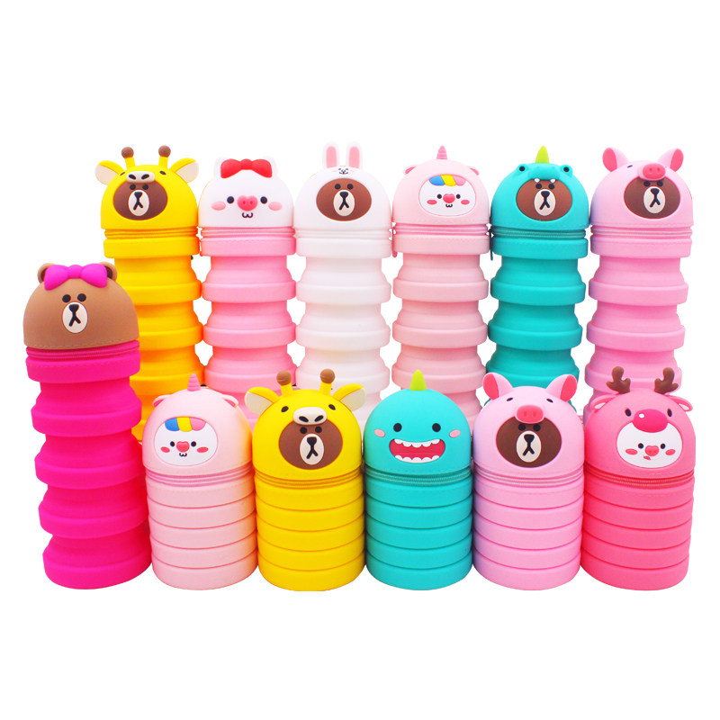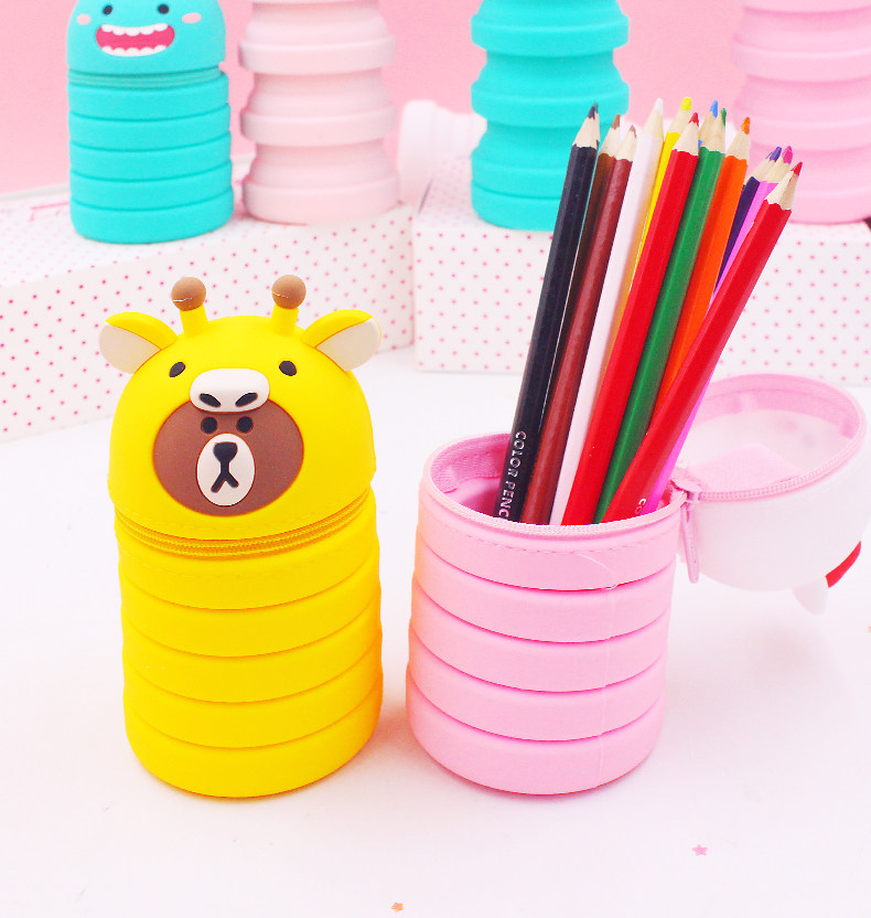 Мультяшный пенал, регулируемый силиконовый держатель для ручек для школьников и студентов, Южная Корея