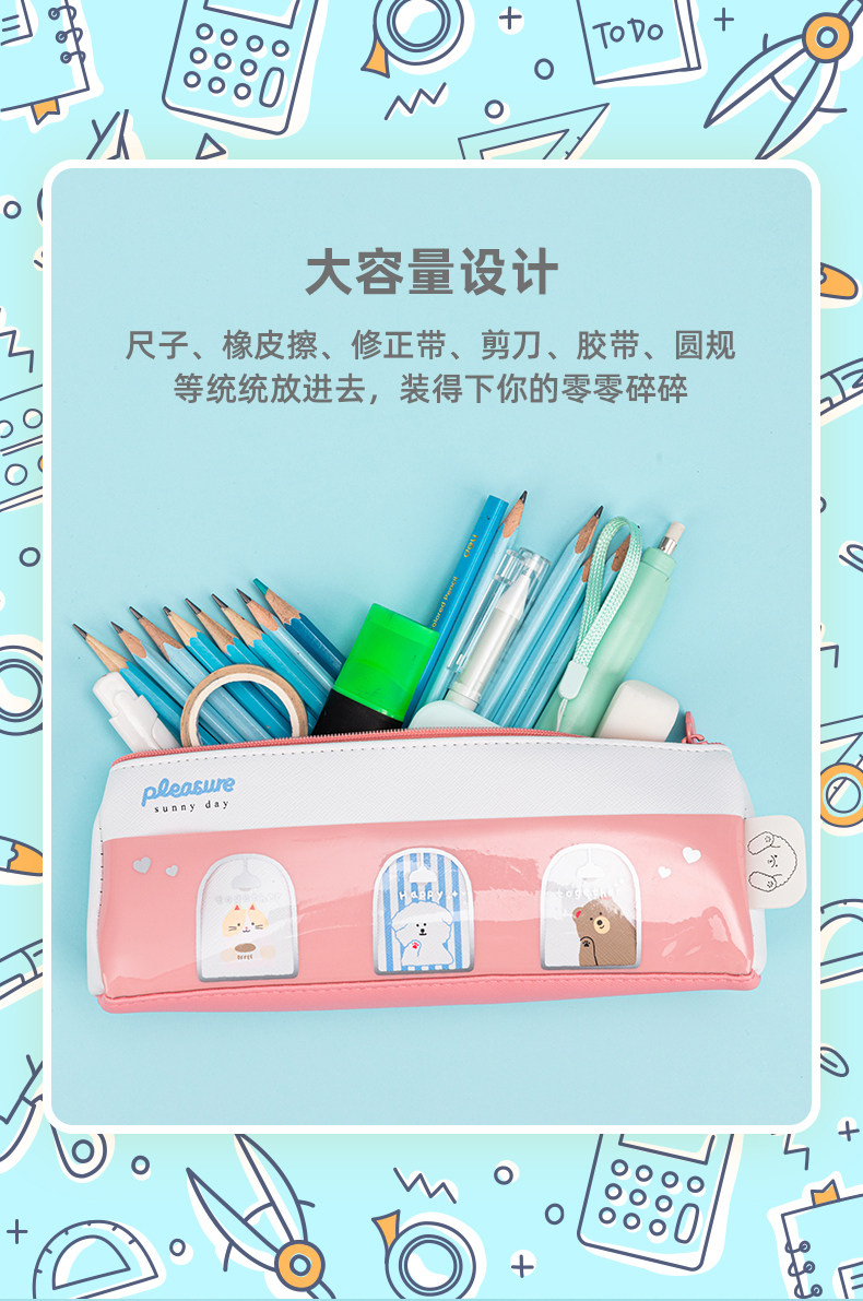 Пенал, мультяшная непромокаемая сумка для школьников, длинная вместительная и большая сумка для хранения, треугольник