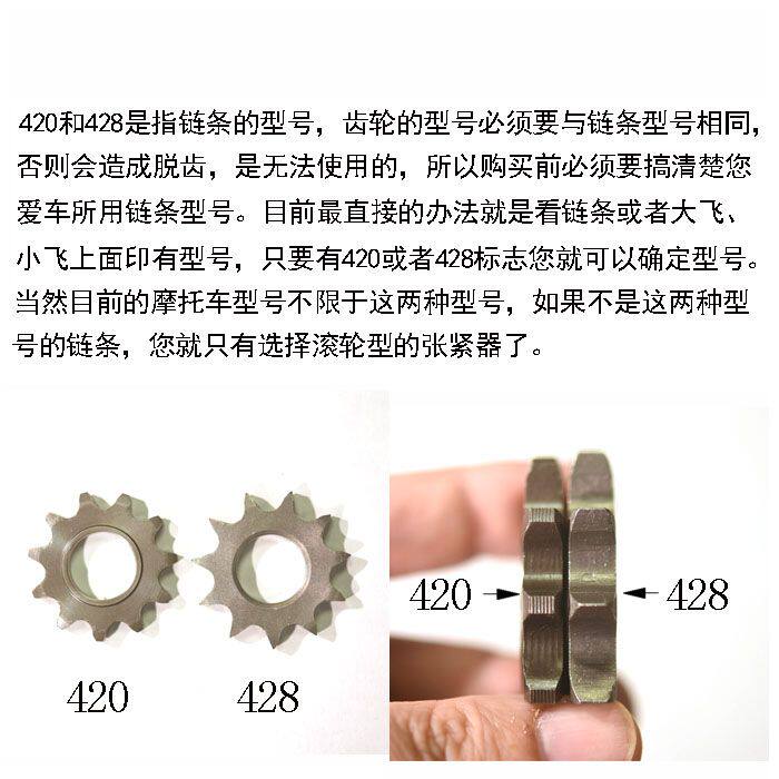 Существует два типа плотных передач, которые подходят для 428 и 420 цепей, которые разделены на три спецификации, а именно 150 крупных труб, 125 небольших квадратных труб и круглые трубы.Пожалуйста, выберите соответствующую модель при покупке.