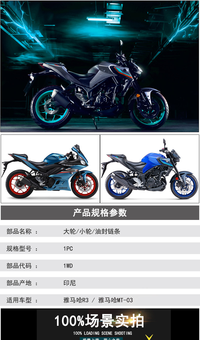 Yamaha, велосипедная система шатунов, цепь, цепочка, оригинальный комплект с шестернями, модель R3, 3 предмета