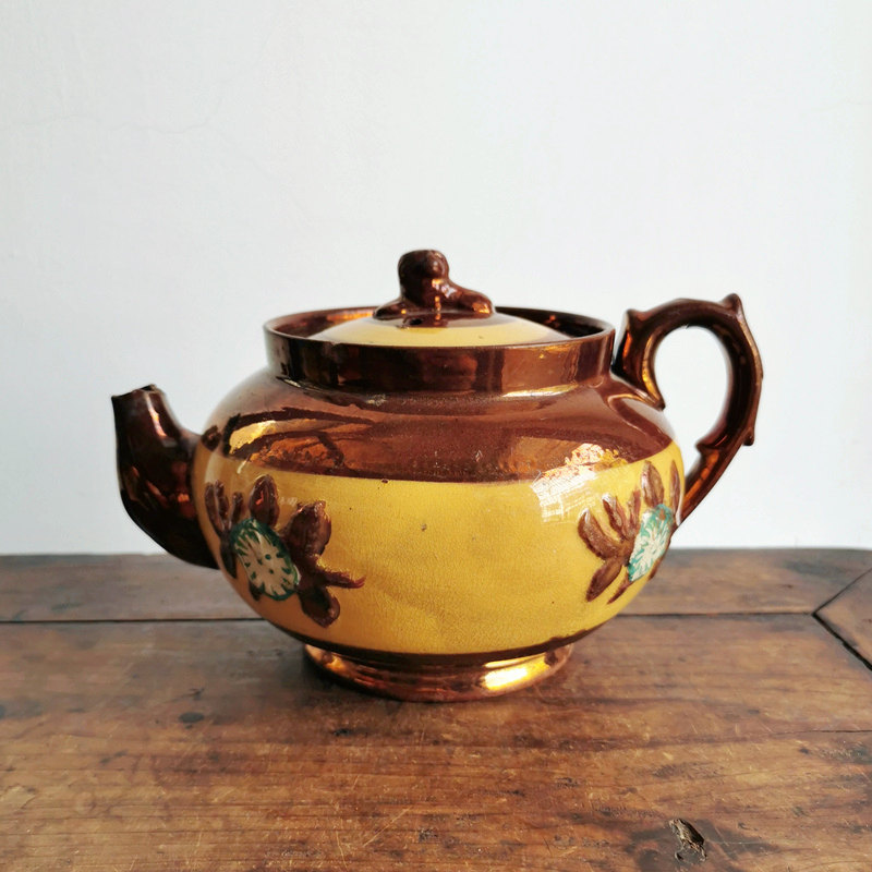 Старые керамические чайные набор во время Китайской Республики, фиолетовые песчаные шины, золотые цвета, желтая глазурь и точка, китайский и западный стиль.Рот Си неполный, в кастрюль используется небольшая кожа, а крышка горшка имеет три маленькой кожи.Крышка имеет высоту 12,5 см, а максимальный диаметр живота составляет 19,5 см.Специальное предложение, Huiyou!