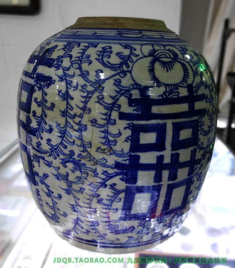 Редкие большие сине -белые фарфоровые банки, запутанные ветви династии Старой Цин, Лиан Чжи Чжи XIXI CAN Диаметр танка 25 мм гарантии полного продукта
