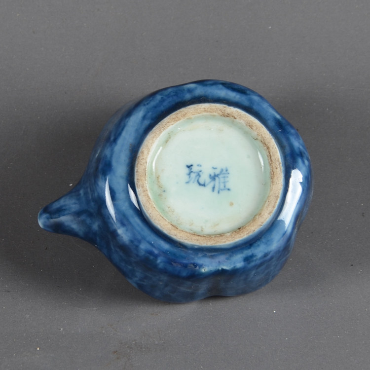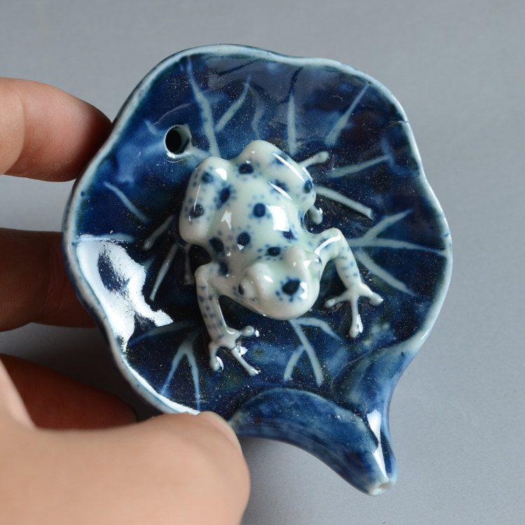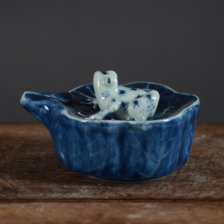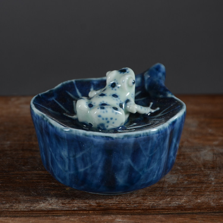 Поздняя династия Цин, народная печь ручной работы Цзи-синий лист лотоса, лягушка, маленькая капля воды, канцелярские украшения, старинный фарфор Цзиндэчжэнь