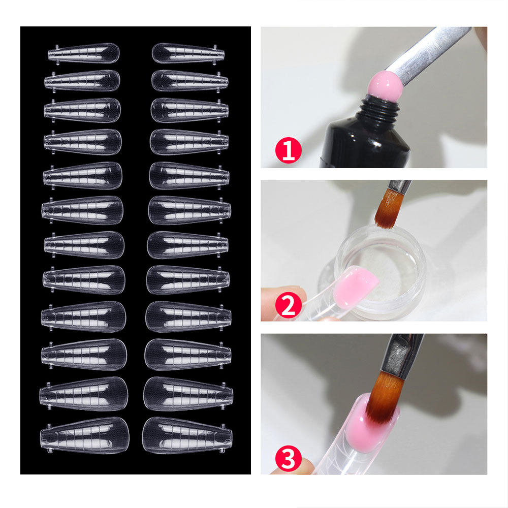 Накладные ногти Полигель для наращивания Двойная форма ногтей Гвозди в форме гроба Прозрачные типсы для балерины Полное покрытие 120 шт.