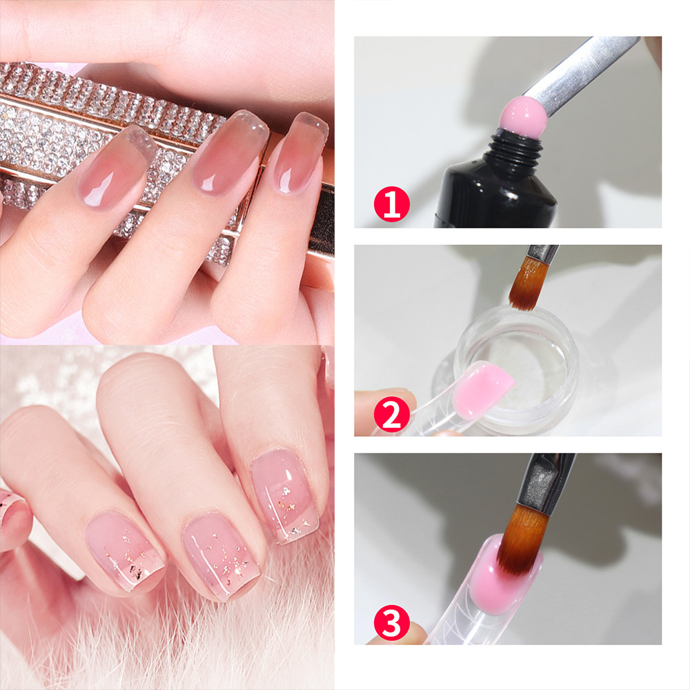 4. Нанесите строительный гель на форму для ногтей, используйте ручку для дизайна ногтей с очищающим средством, чтобы гель стал гладким.