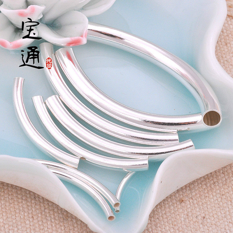 S925, глянцевая изогнутая трубка, аксессуары, ожерелье, бусины, плетеный серебряный браслет, аксессуар, серебро 925 пробы, DIY