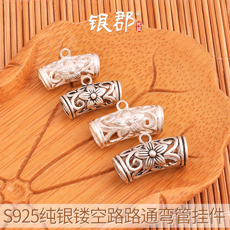 Аксессуары ручной работы, плетеная ручка, изогнутая трубка, подвеска, браслет из красной нити, серебро 925 пробы, DIY, в цветочек