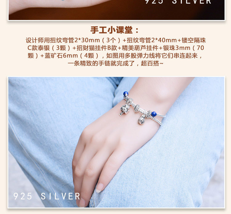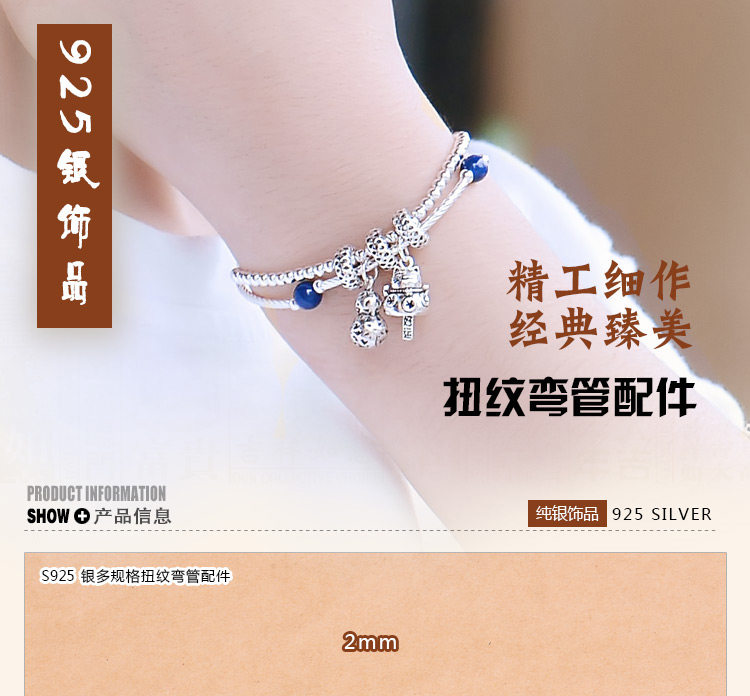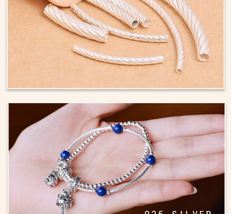 银郡 S925, аксессуары, изогнутая трубка, ручка, бусины, аксессуар, браслет из красной нити, серебро 925 пробы, DIY