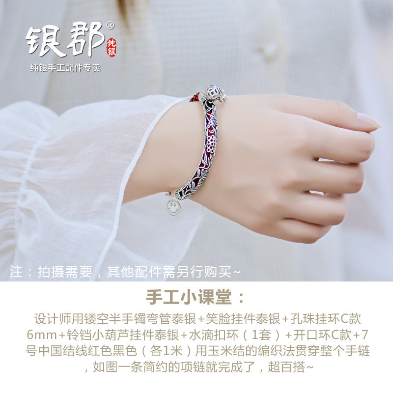 Аксессуары ручной работы, плетеная ручка, изогнутая трубка, браслет из красной нити, серебро 925 пробы, DIY