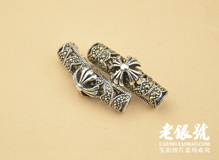 925 Тайский серебряный микро -мозаичный максайский алмазный вырез, пересекающая 6 -мм изогнутая труба старая серебряная ювелирные аксессуары партия A44