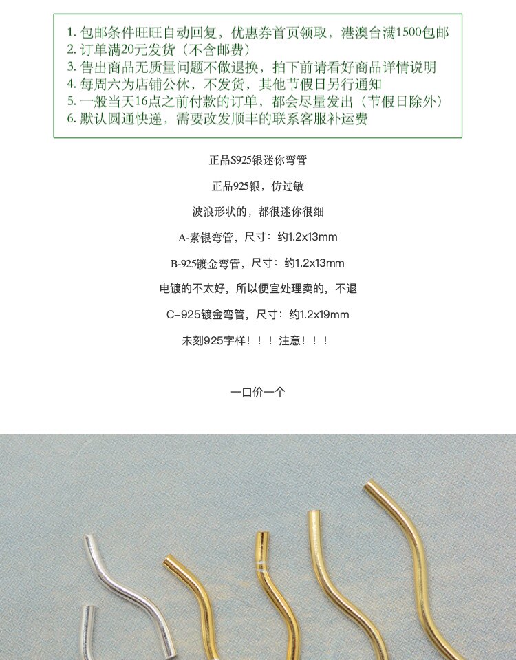Маленькая волнистая базовая изогнутая трубка, браслет, ожерелье, аксессуары, серебро 925 пробы, DIY, 1 шт