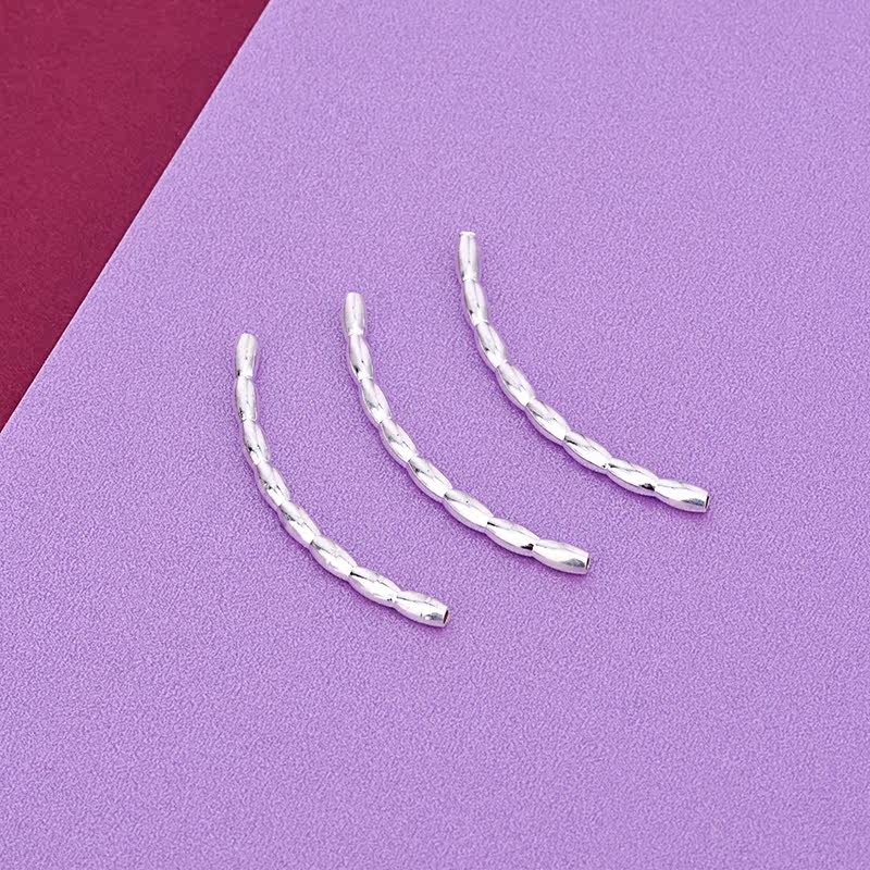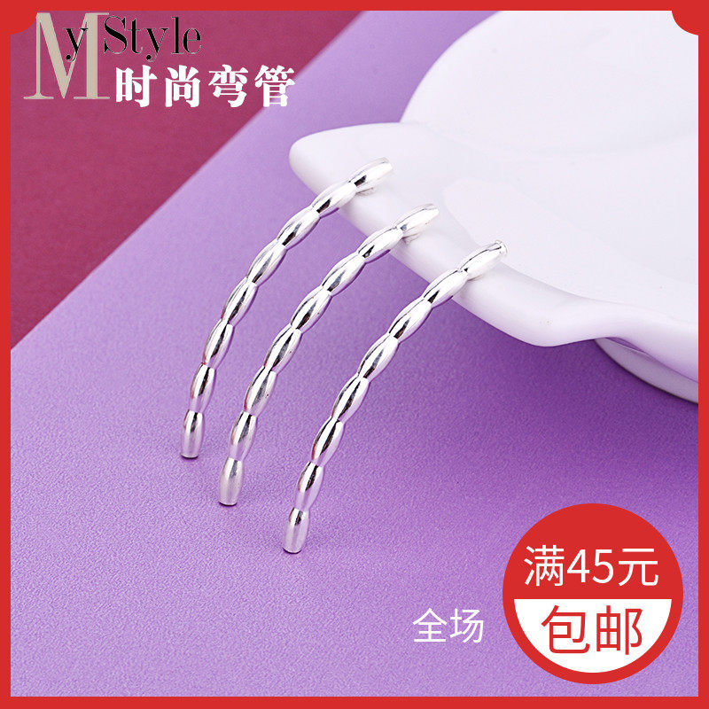 S925, бамбуковая глянцевая изогнутая трубка, ручка, браслет, набор материалов, серебро 925 пробы, DIY