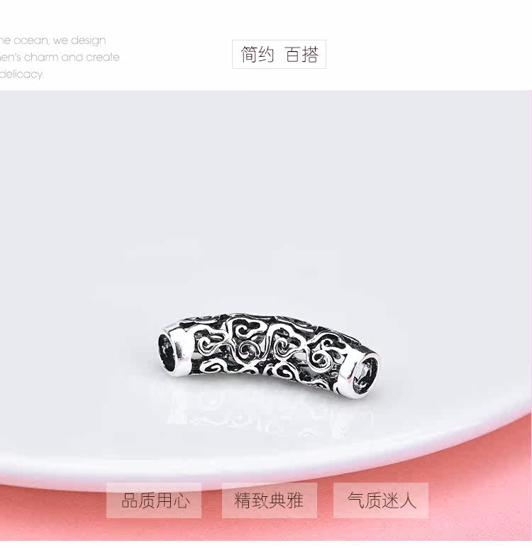 S925, ручка с аксессуарами, браслет, изогнутая трубка ручной работы, бусины с бусинами, аксессуар, серебро 925 пробы, DIY