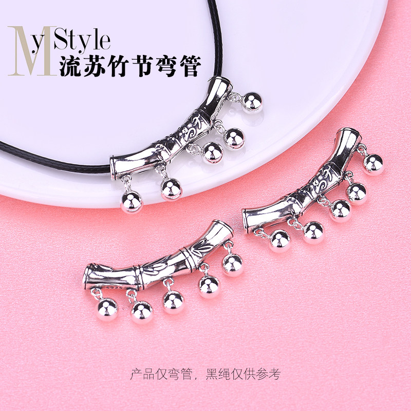 S925, бамбуковая изогнутая трубка с кисточками, браслет с аксессуарами ручной работы, серебро 925 пробы, DIY