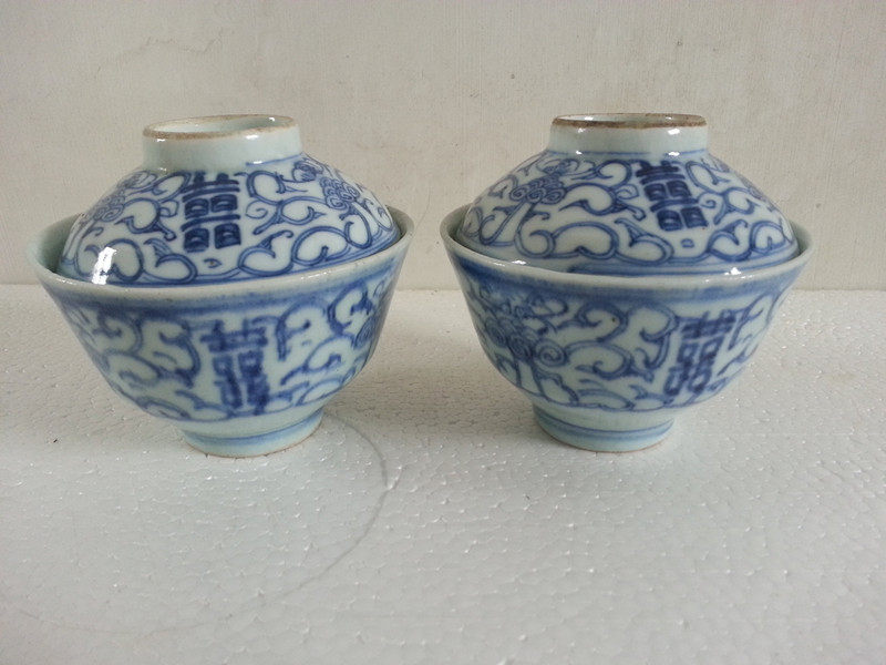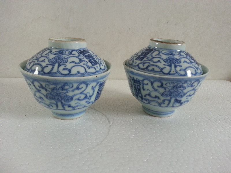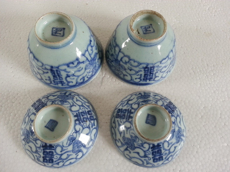 Сине-белая фарфоровая антикварная чайная чашка