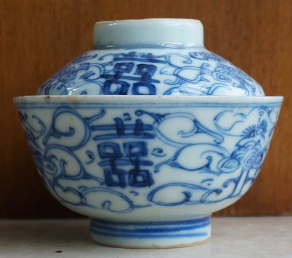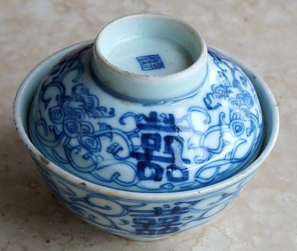 Династия Цин Цзинья сине -белая двойная радость запутанные ветви покрытые чашами