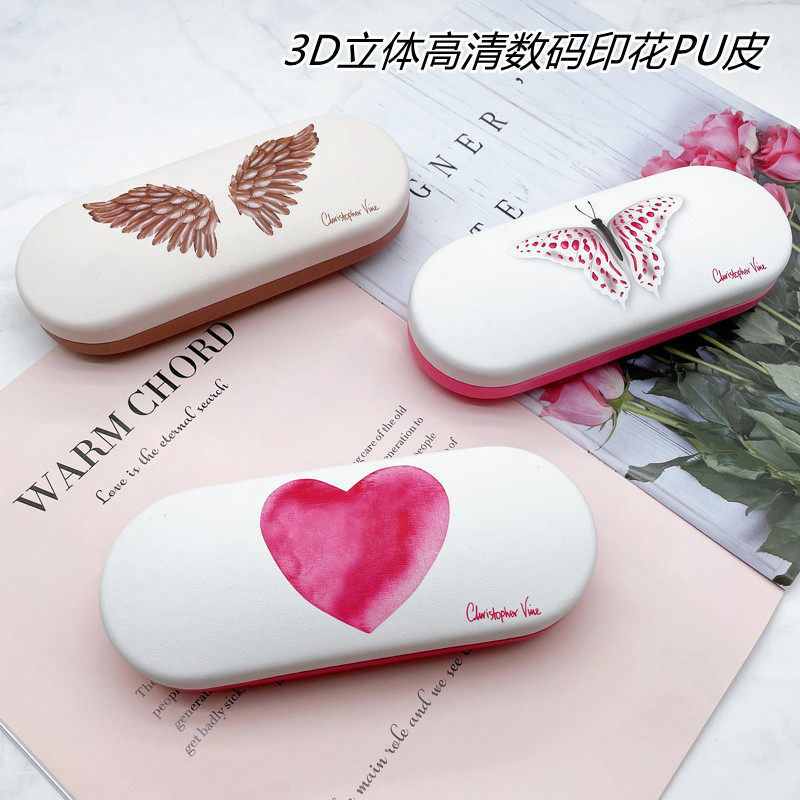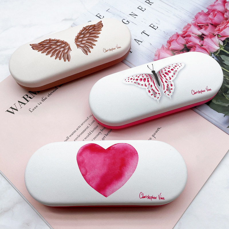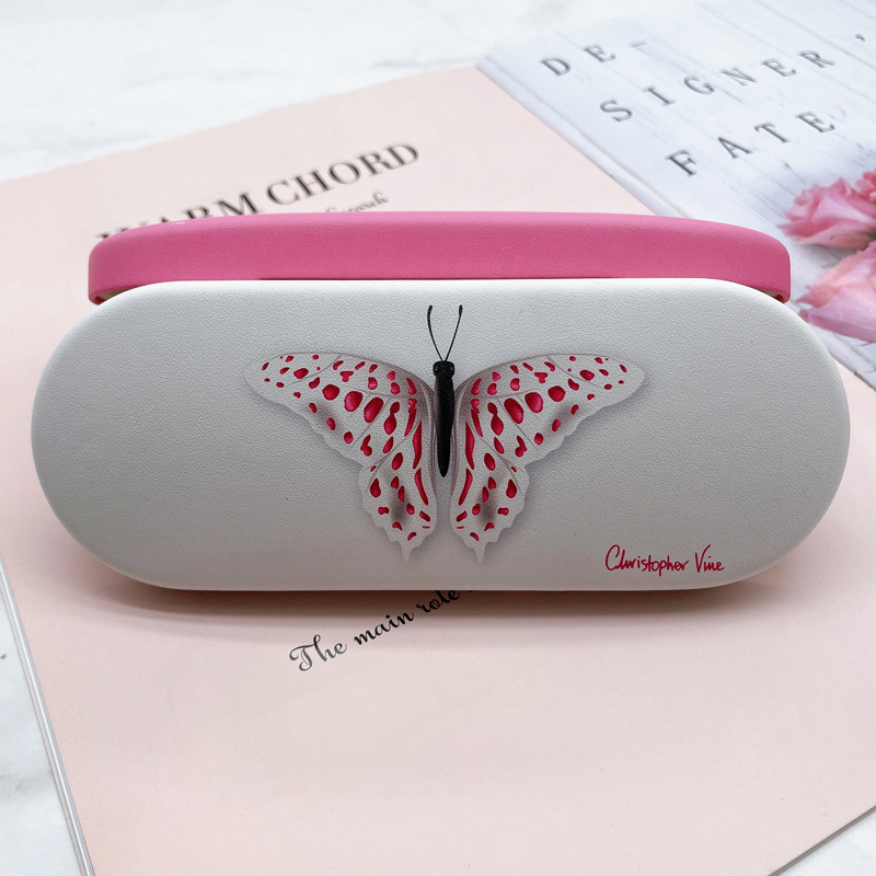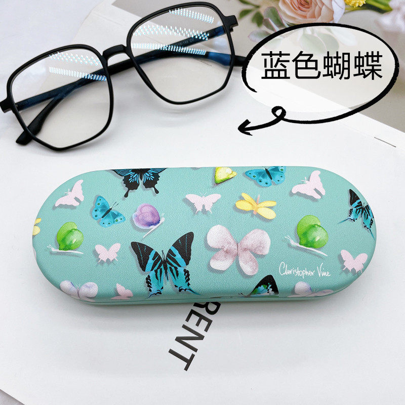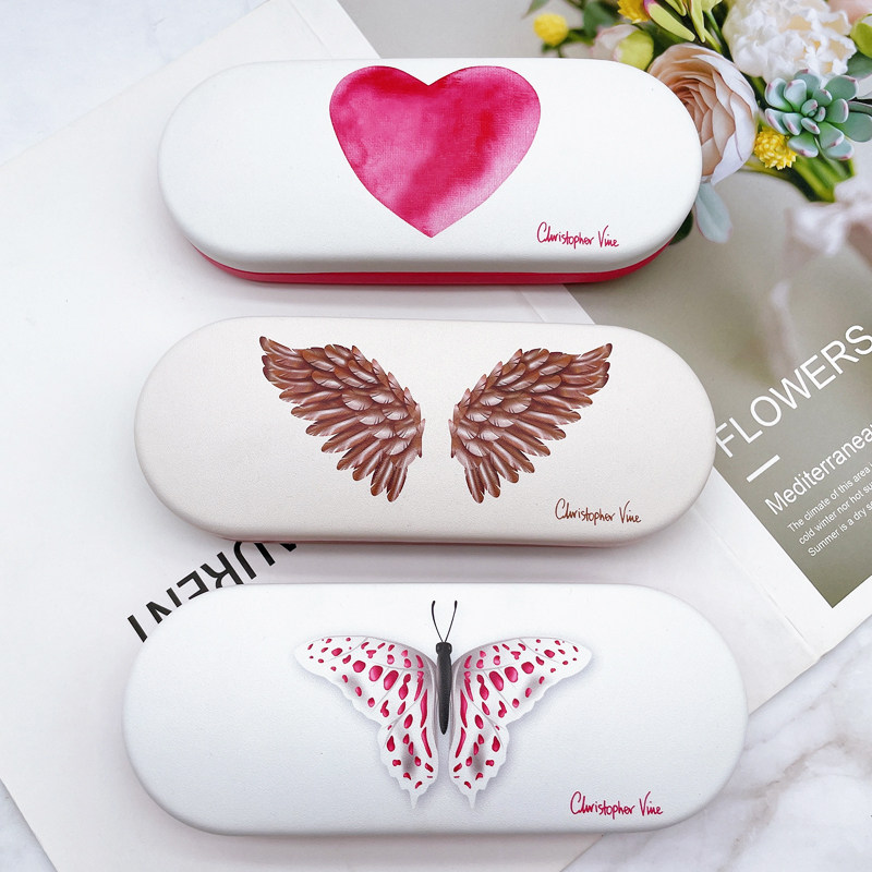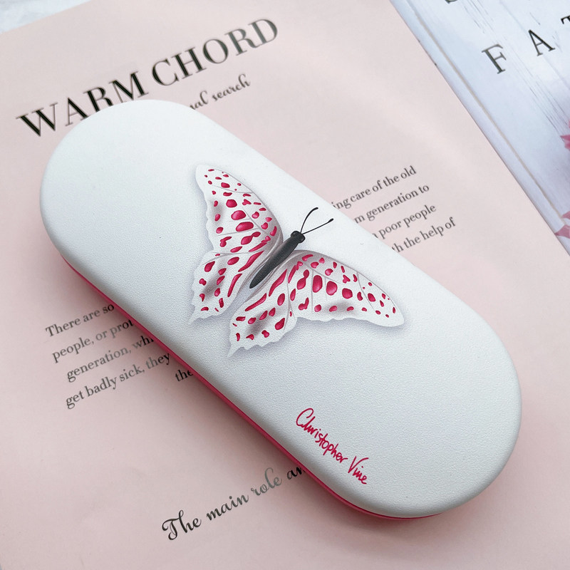 Корейский сингл в девушке Pu Love Butterfly крылья цветовые цветные цветовые оптические очки коробка сопротивляется портативным студентам