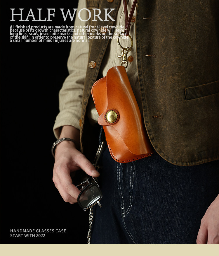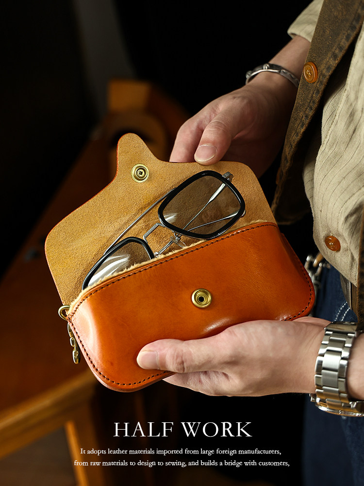 Ретро кожаные портативные солнцезащитные очки ручной работы, сумка-органайзер, воловья кожа, из натуральной кожи
