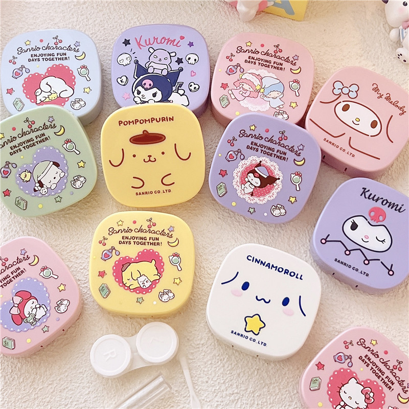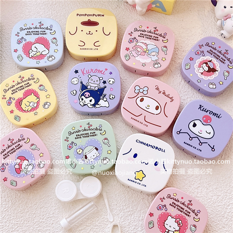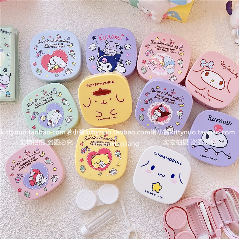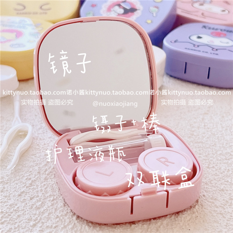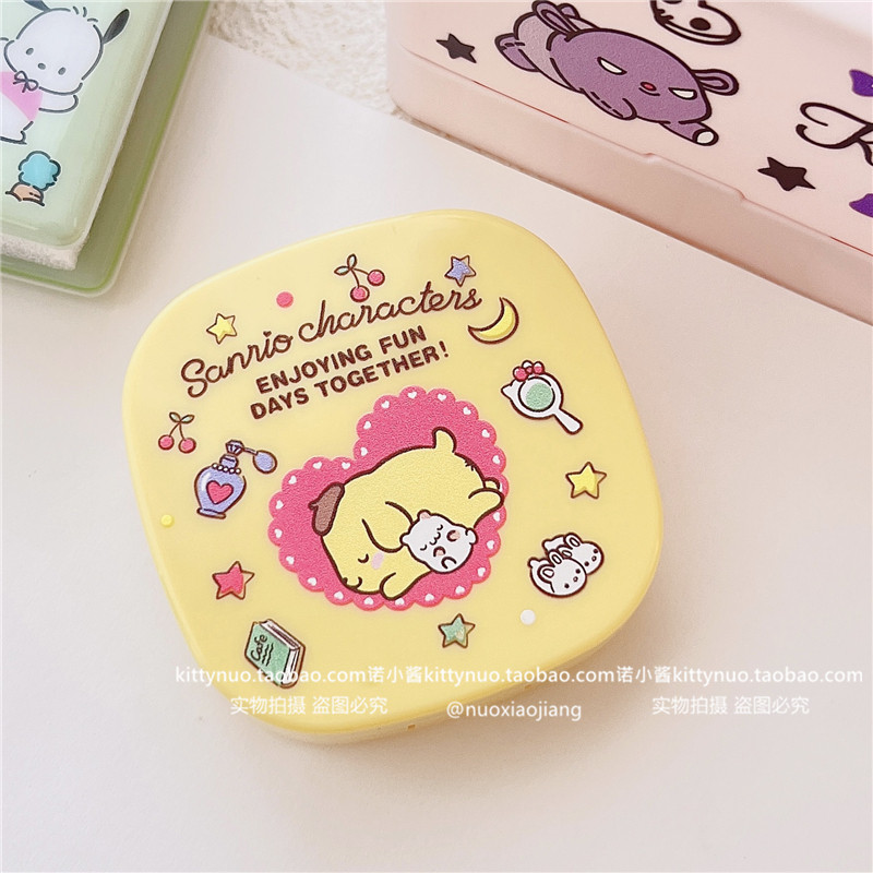 Японская стиль милый круговой ученик контактные линзы коробка партнера с зеркалом Pache Dog kuromi Jade Cinnamon Glasses маленькая коробка