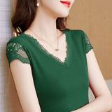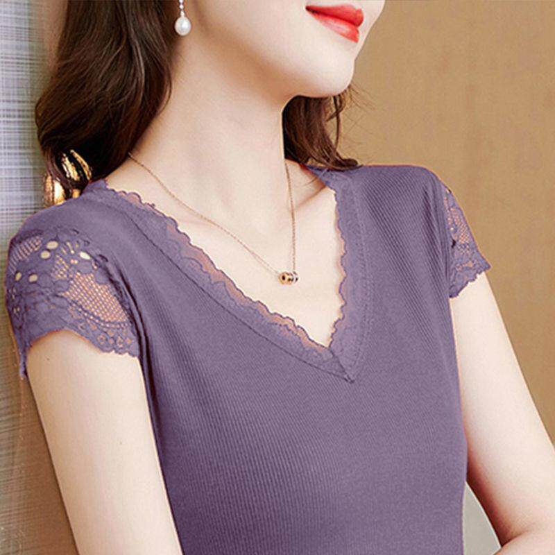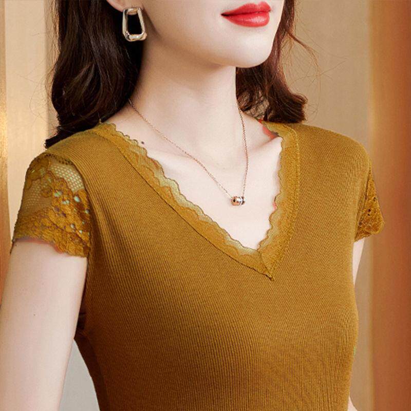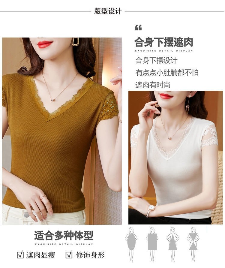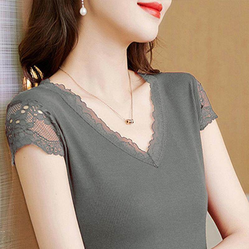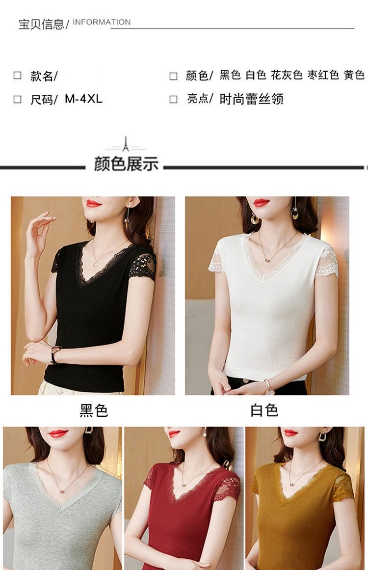 Кружевная летняя футболка, модный вместительный и большой корсет, V-образный вырез, большой размер