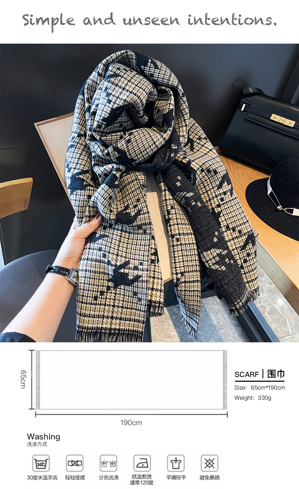 Cosp Kosp Двусторонний двухцветный универсальный кашемировый шарф, бархатная утепленная накидка