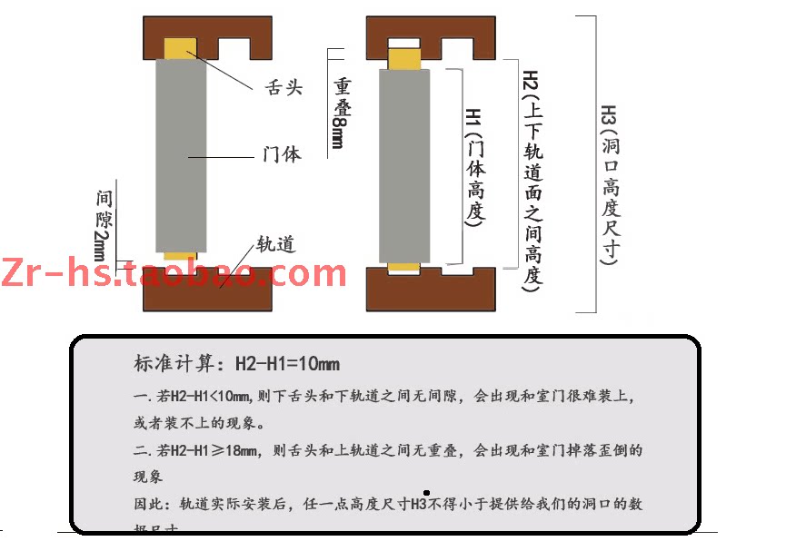 >>Как настроить: клиенты обеспечивают высоту и ширину двери двери, и мы вычитаем размер взлетов и падений рельса и крестный шов двери.
