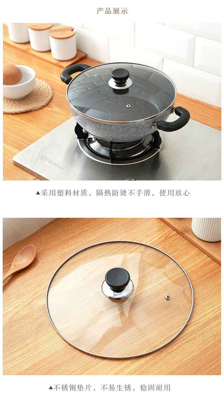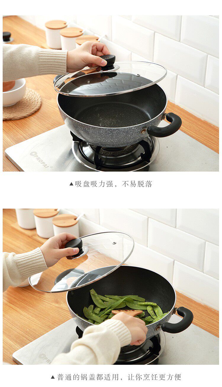 Домохозяйство прозрачная крышка крышка горшка натяжение стеклянная ручка крышки универсальный жареный вок