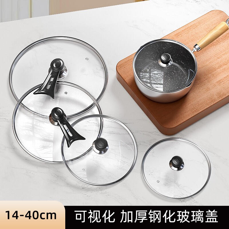 Домохозяйственная крышка для домашней крышки из закаленной стеклянной крышки 32 см. Крышка wok Плостное дно универсальное жаркое покрытие горшки с крышкой.