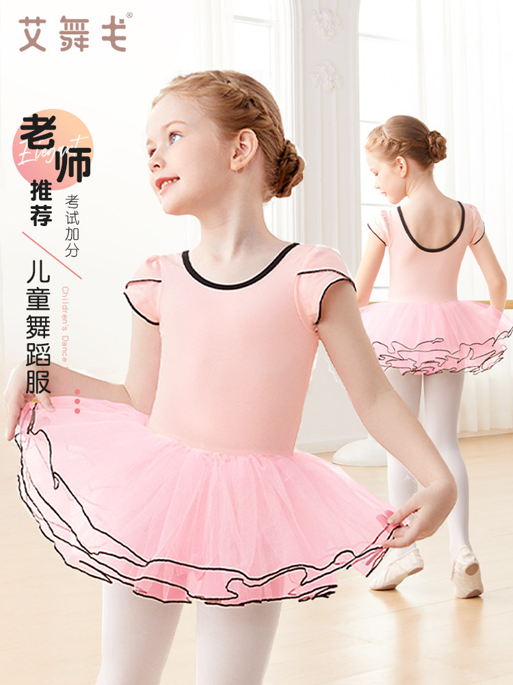 Покупать продукты для детской танцевальной юбки, балетной пачки, юбки тюля, тренировочная форма для девочек с короткими рукавами, летняя балет