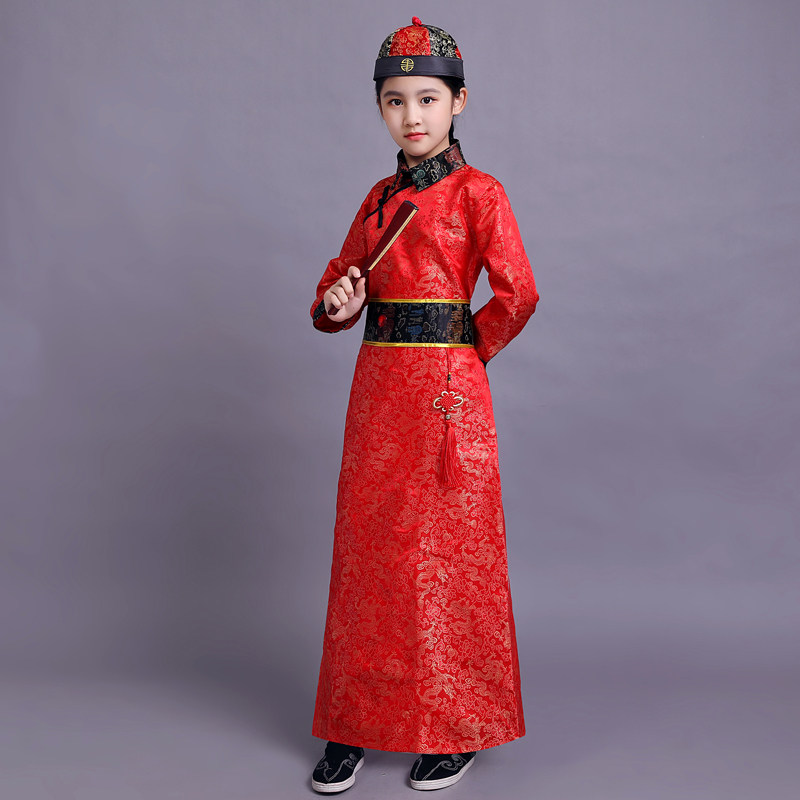 Детский маньчжурский костюм династии Цин для мальчиков, костюм маленького императора, принца Агобеля, костюм древнего министра, принца, костюм для выступлений