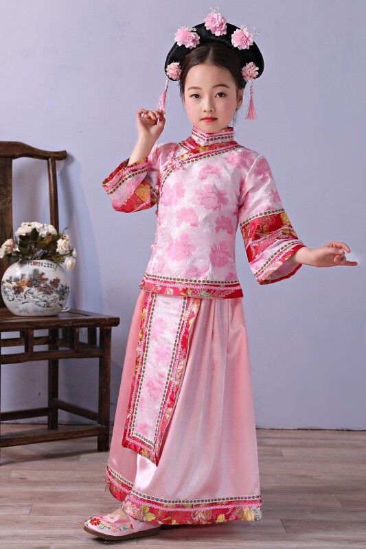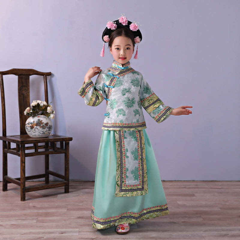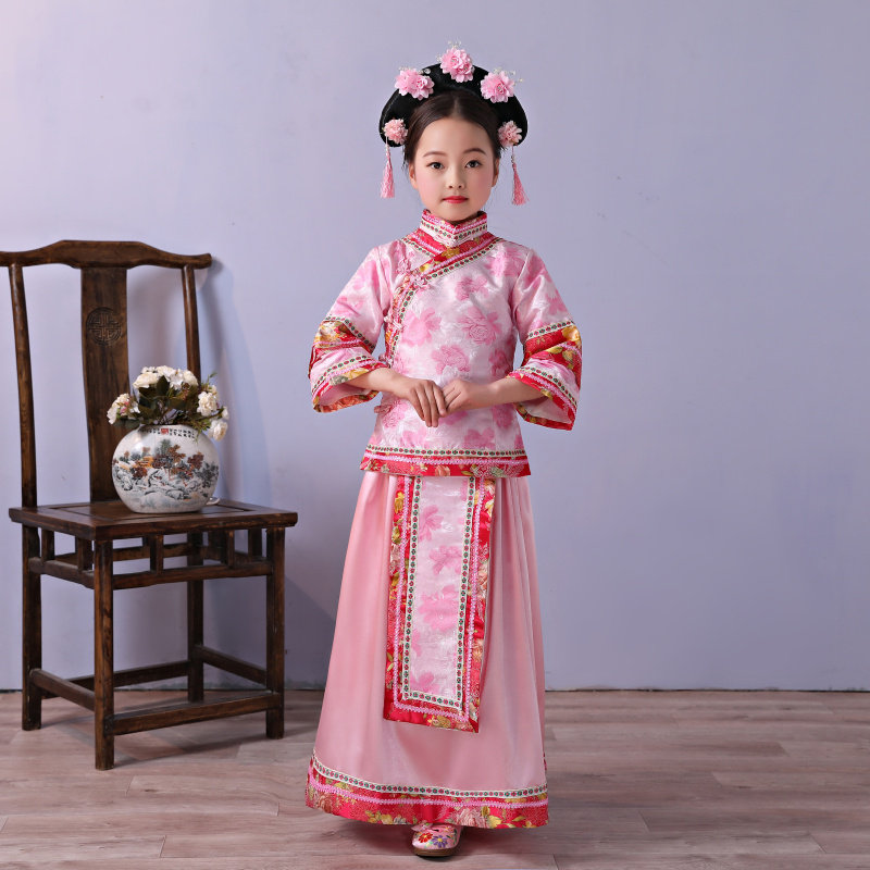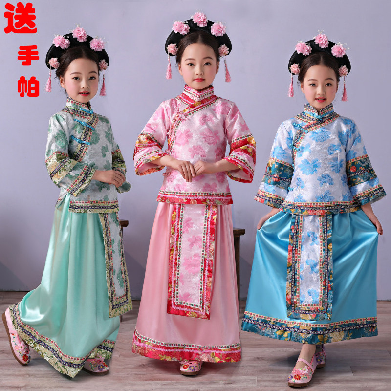 Детские маньчжурские костюмы династии Цин, дворцовые костюмы принцессы для девочек, древние замки, костюмы династии Цин в китайском стиле, костюмы с флагом