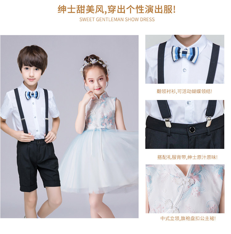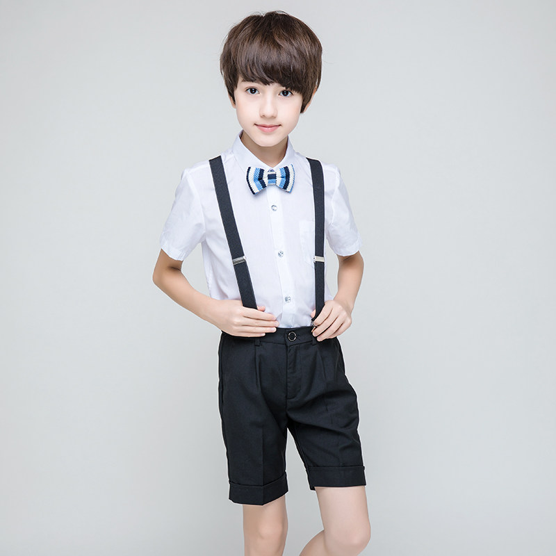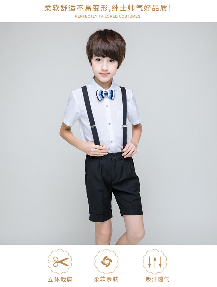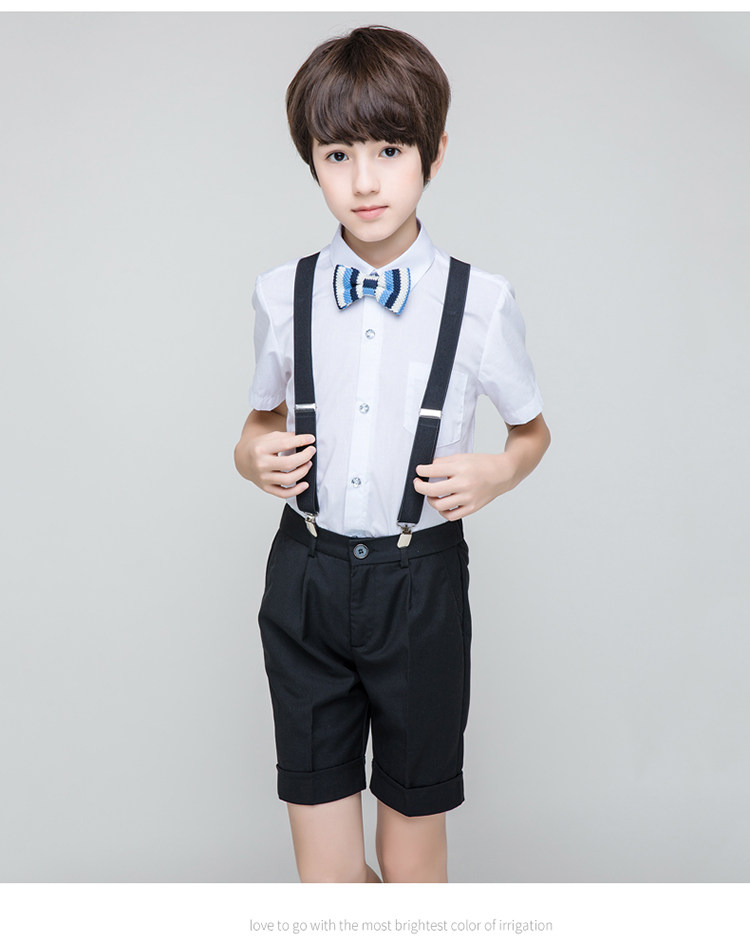 - Комплект для мальчиков, рубашка, шорты, галстук-бабочка, подтяжки, 4 шт, J05